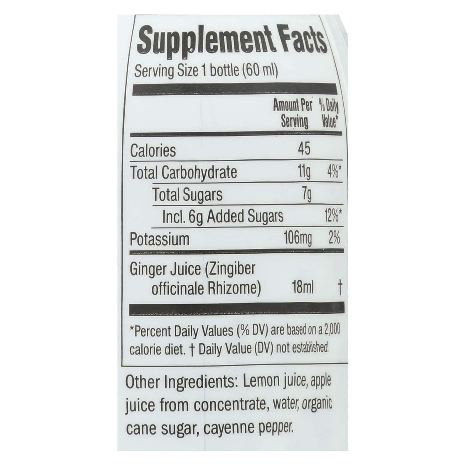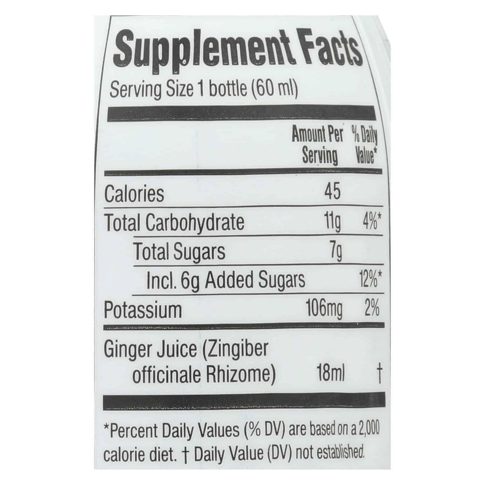 Dietary Supplement. Non GMO. Non GMO Project verified. nongmoproject.org. 30% ginger juice (18 ml per serving). Hot/awakening. Ginger every day. GingerRescueShots.com. Love me? Tell us. (hashtag)LoveGinger. Facebook. Twitter. Pinterest. Instagram. Made in USA for Ginger People Group.