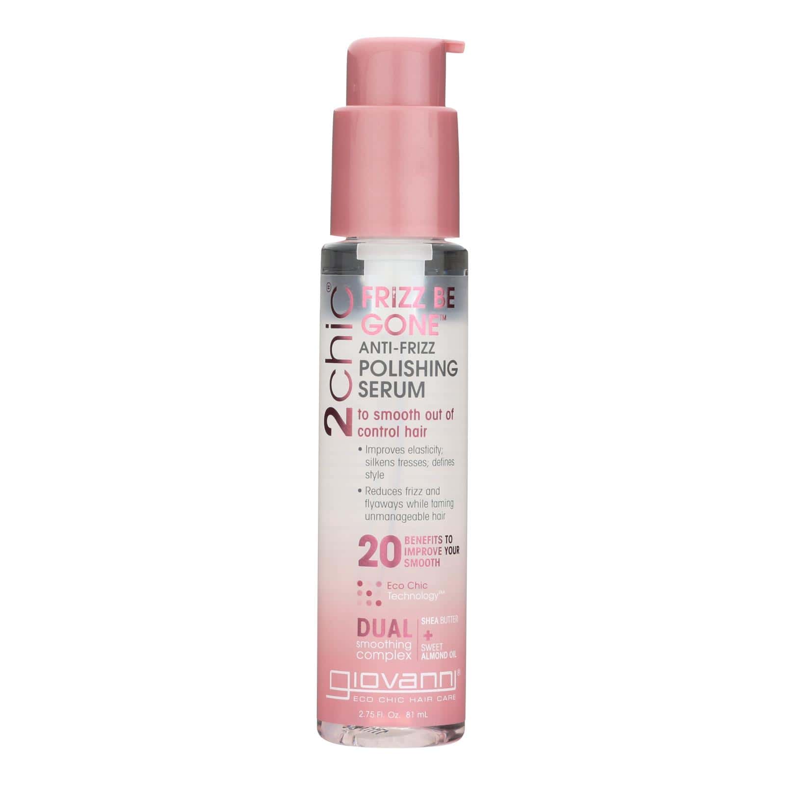 GIOVANNI, HAIR POLISHING SERUM 2CHIC FRIZZ BE GONE SHEA BUTTER & SWEET ALMOND OIL POLISHING SERUM IS AN ORGANIC, STELLAR PRODUCT YOU CAN COUNT ON. IT IS MADE WITHOUT ANY TESTING ON ANIMALS, AND IS VEGETARIAN. THERE ARE NO DYES, PARABENS OR OTHER HARMFUL CHEMICALS, INCLUDING PEGS. THIS UNIQUE PRODUCT SHINES, DEFINES, TAMES FRIZZ AND GIVES HEAT PROTECTION. EACH BOTTLE CONTAINS 2.75 FL. OZ. OF SERUM.