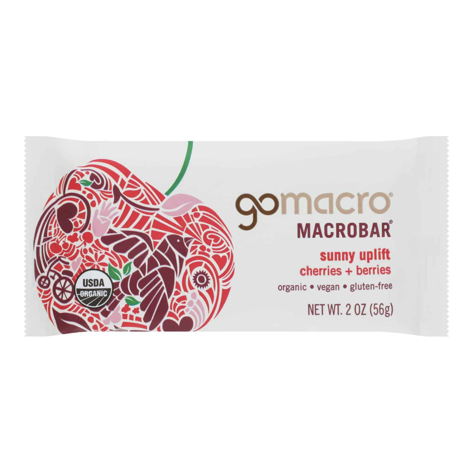 GOMACRO MACROBAR VEGAN BAR, CHERRIES + BERRIES IS MADE WITH WHOLESOME, SUSTAINABLY SOURCED INGREDIENTS. THIS SMALL BAR PACKS A BIG PUNCH OF FLAVOR. NOT ONLY ARE THESE MACROBIOTIC BARS DELICIOUS, THEY ARE ALSO ORGANIC, GLUTEN-FREE, KOSHER AND NON-GMO. EACH PACKAGE OF GOMACRO MACROBAR VEGAN BAR, CHERRIES + BERRIES CONTAINS ONE 2 OZ. BAR.