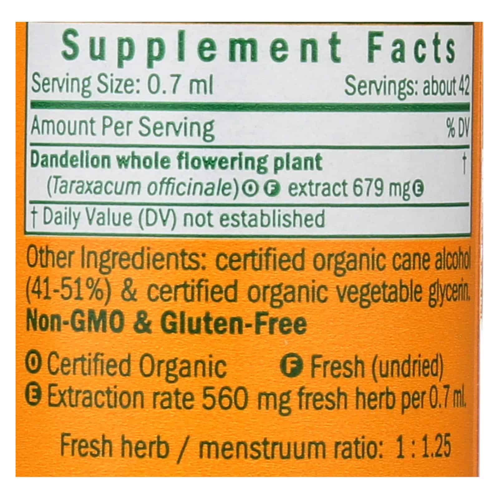 HERB PHARM WHOLE FLOWERING PLANT DANDELION LIQUID HERBAL SUPPLEMENT IS MADE BY HERB FARM, WHO HAVE BEEN MAKING HERBAL MEDICINE IN APPLEGATE VALLEY, OREGON FOR OVER 35 YEARS. PEOPLE RELY ON OUR STANDARDS FOR EARTH-FRIENDLY PRACTICES FOR HERBAL SUPPLEMENTS. WE PREPARE OUR DANDELION EXTRACT FROM THE FRESH (UNDRIED), WHOLE TARAXACUM OFFICINALE PLANTS (ROOT, LEAF AND FLOWER) WHICH ARE CERTIFIED ORGANICALLY GROWN ON OUR OWN FARM. TO ASSURE OPTIMAL EXTRACTION OF DANDELION?S BIOACTIVE COMPOUNDS, THE PLANTS ARE HAND-HARVESTED WHILE IN FULL FLOWER AND ARE THEN PROMPTLY EXTRACTED WHILE STILL FRESH AND SUCCULENT. SEE SIDE PANEL FOR WARNINGS. INCLUDES ONE 1 FL. OZ. BOTTLE. TREAT YOURSELF TO BETTER HEALTH.