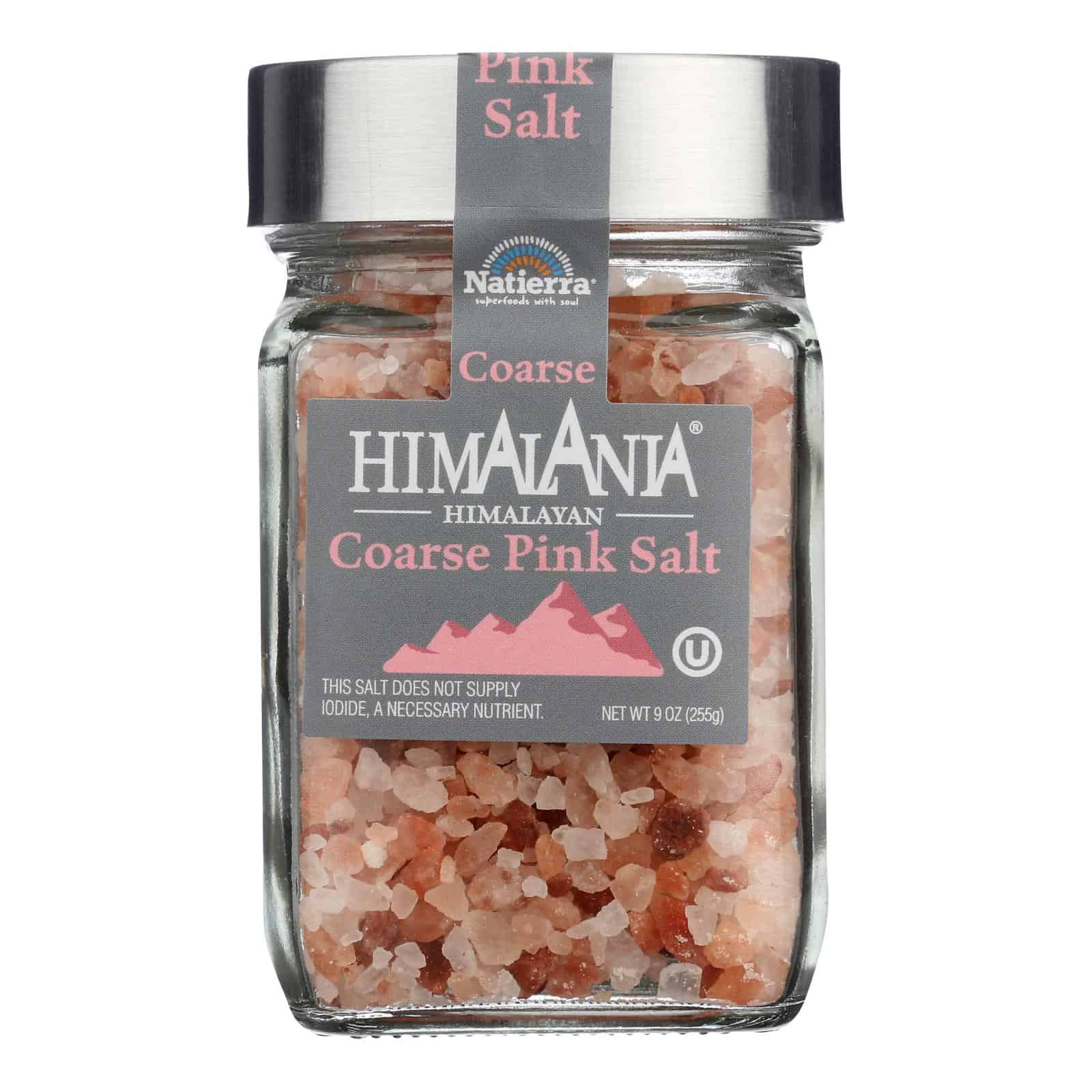 NATIERRA PINK SALT, HIMALANIA COARSE IS A HIGH QUALITY PINK SALT NATURALLY SOURCED BY HAND FROM THE HIMALAYAN MOUNTAIN RANGE. THIS PINK SALT IS PURE AND FREE OF UNNATURAL AND UNNECESSARY ADDITIVES. THIS PRODUCT IS NON-GMO AND ALL NATURAL. PACKAGED IN THIS CONVENIENT JAR, EACH CONTAINER OF SALT IS QUICK AND EASY TO USE. EACH JAR OF NATIERRA PINK SALT, HIMALANIA COARSE WEIGHS 9 OZ.