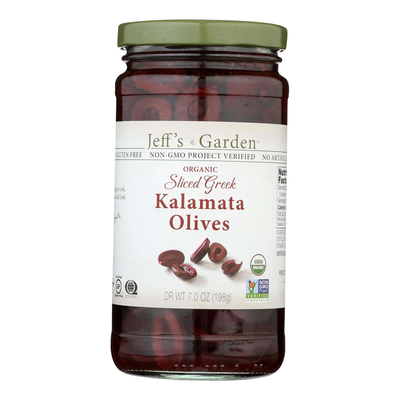 JEFF’S NATURALS SLICED GREEK KALAMATA OLIVES ARE SOURCED FROM FAMILY FARMS IN GREECE, THE HOMELAND OF THIS DISTINCTIVE OLIVE. WE WORK WITH GROWERS ALL YEAR LONG TO MAKE SURE WE SECURE THE BEST FROM EACH CROP. SLICED FOR YOUR CONVENIENCE THEIR SIGNATURE FLAVOR AND COLOR WILL MAKE YOUR MEALS SHINE. EACH 12 FL. OZ. JAR OF OLIVES IS ORGANIC, GLUTEN-FREE, VEGAN AND CONTAINS PITS.