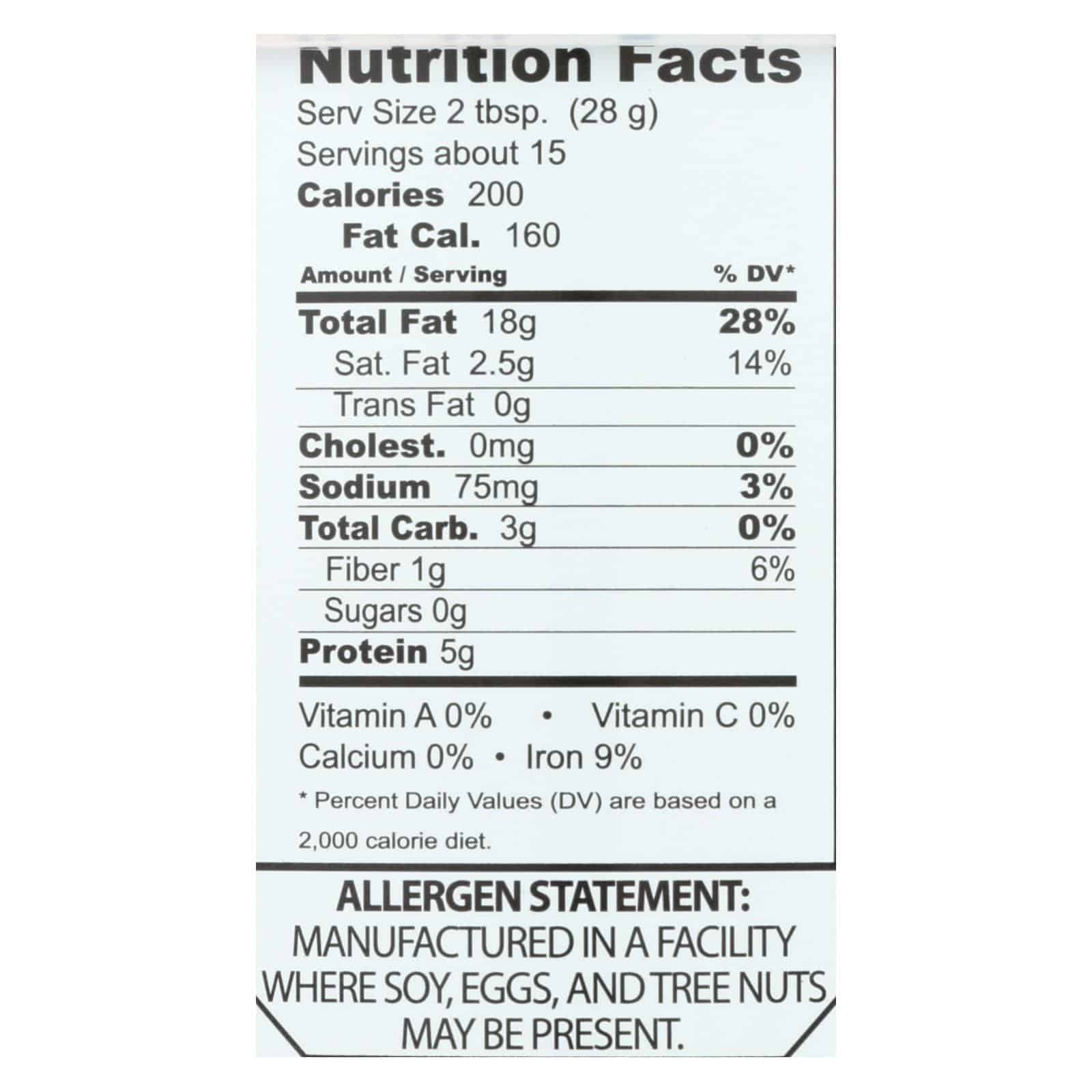 JOYVA ROASTED SESAME TAHINI IS AN ALL-NATURAL CREAMY PUREE OF SESAME SEEDS THAT HAS A LIGHT NUT-LIKE FLAVOR. EACH 15 OZ. CONTAINER PROVIDES 15 SERVINGS OF ABOUT 2 TBSP. EACH. EACH SERVING HAS 200 CALORIES, 5 G. OF PROTEIN AND 1 G. OF DIETARY FIBER. OUR TAHINI CONTAINS NO ADDITIVES OR EMULSIFIERS. SEE NUTRITION PANEL FOR ALLERGENS.