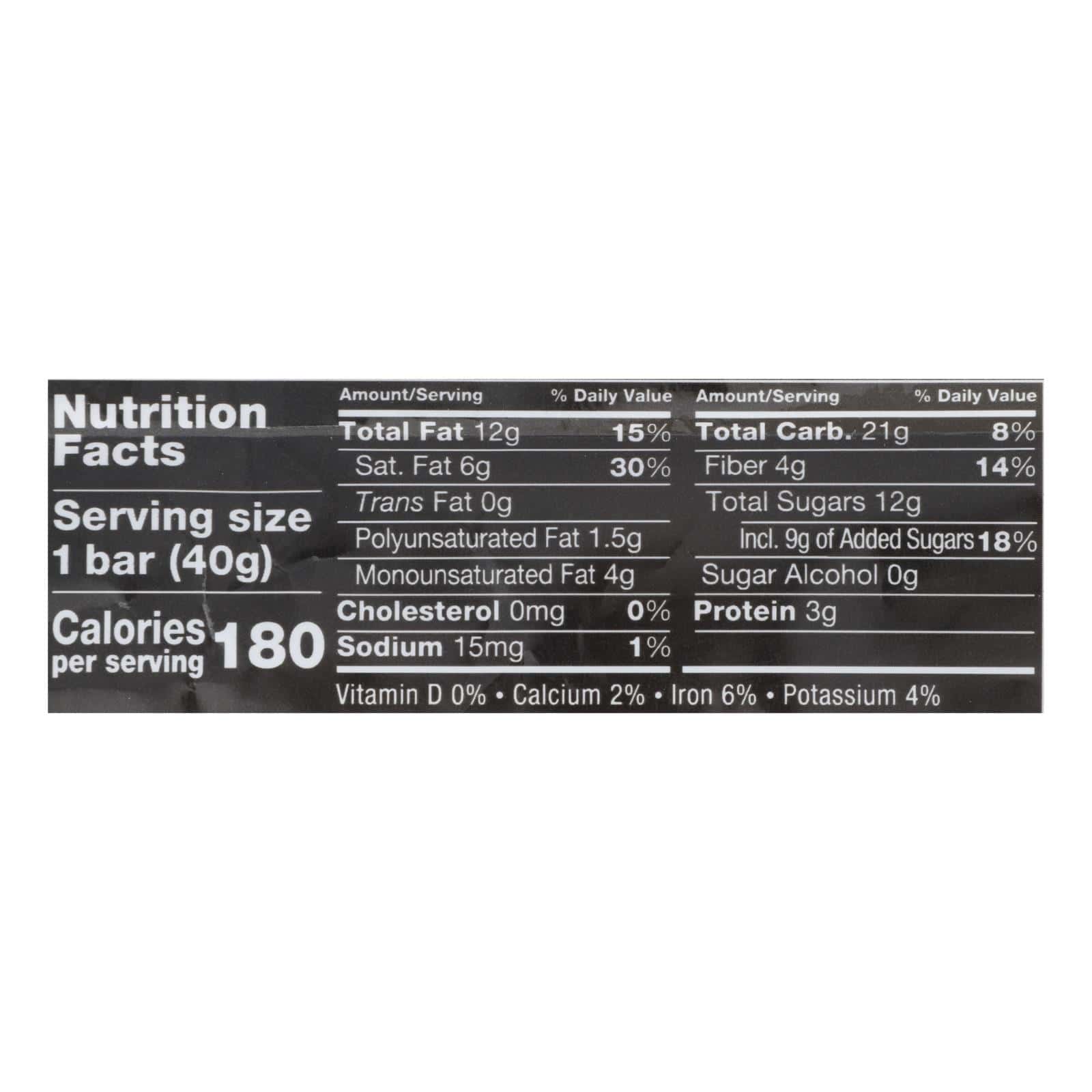 0 g trans fat. 12 g fat per bar. Gluten free. Dairy free. Very low sodium. Low glycemic index. No sugar alcohols. Good source of fiber. See nutrition panel for saturated fat content. No genetically engineered ingredients. 28% nuts & 19% fruit. No. 1 ingredients almonds. Ingredient you can see & pronounce. Do the kind thing for your body, your taste buds & your world. kindsnacks.com. Made in USA with domestic and imported ingredients.