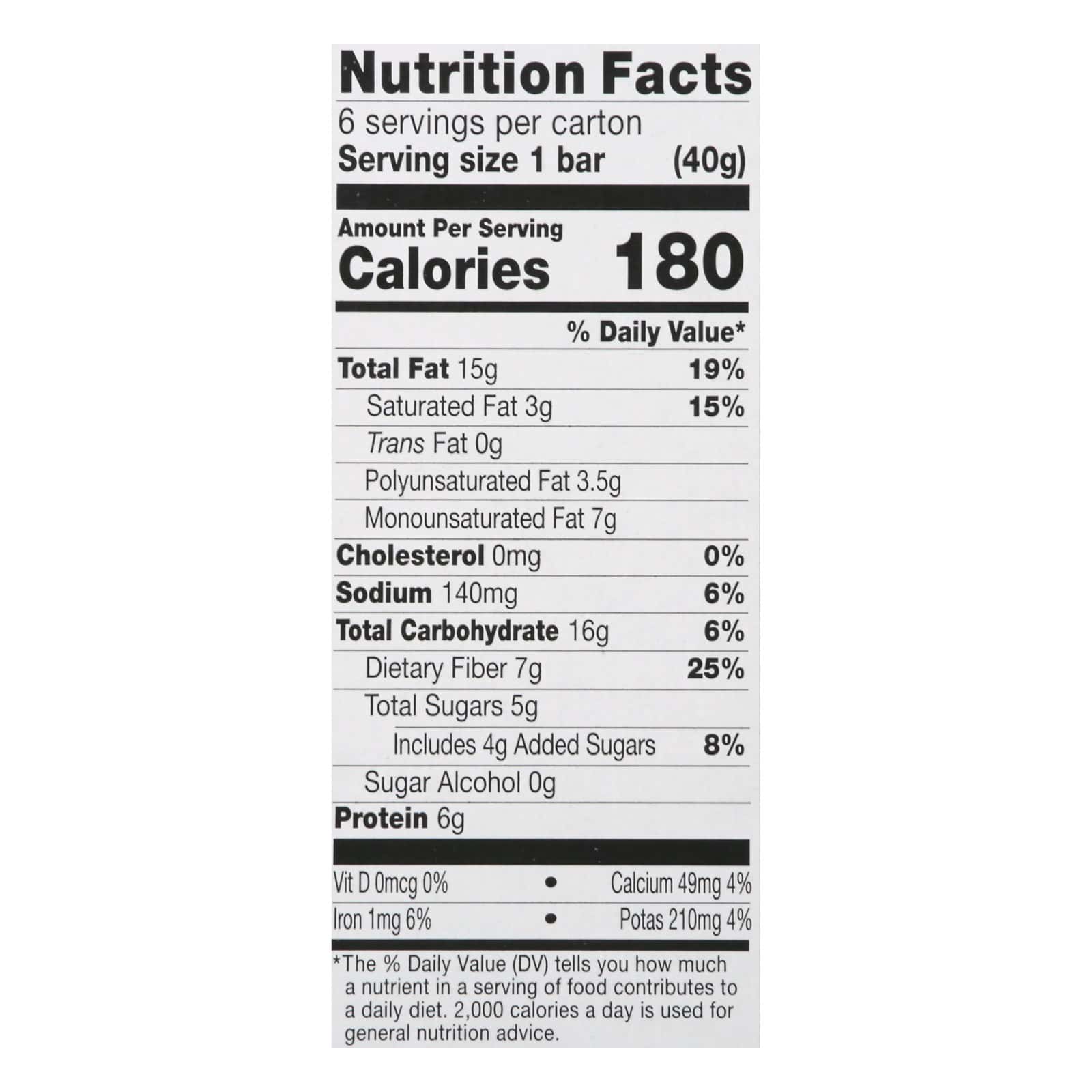 5 g sugar. 6 g protein. 0 g trans fat. 15 g fat per bar. Gluten free. Dairy free. Low sodium. Low glycemic index. No sugar alcohols. High in fiber. No genetically engineered ingredients. No. 1 ingredient heart healthy almonds. Ingredients you can see & pronounce. Now with 6 bars. Kind Dark Chocolate Nuts & Sea Salt took us two years to develop because we’re obsessed with using as little sugar as possible without artificial sweeteners or sugar alcohols. Made with delicious, premium ingredients, it’s now our top seller, and we continue to obsess over every batch! 59% nuts. Do the kind thing for your body, your taste buds & your world. Welcome to the Kind community! Here at Kind, we think a little differently. Instead of or we say and. We choose healthy and tasty, convenient and wholesome, economically sustainable and socially impactful. From the snacks and foods we make, to the way we work, live, and give back, our goal is to make Kind not just a brand, but also a state of mind and community to make the world a little kinder. – Kindly yours, Daniel Lubetzky, Kind Founder. kindsnacks.com. Tell us your favorites & join the conversation: Instagram. Twitter. Facebook. (at)kindsnacks. Learn more at kindsnacks.com. Recycle this carton. FSC: Recycled board. Made in USA with domestic and imported ingredients.