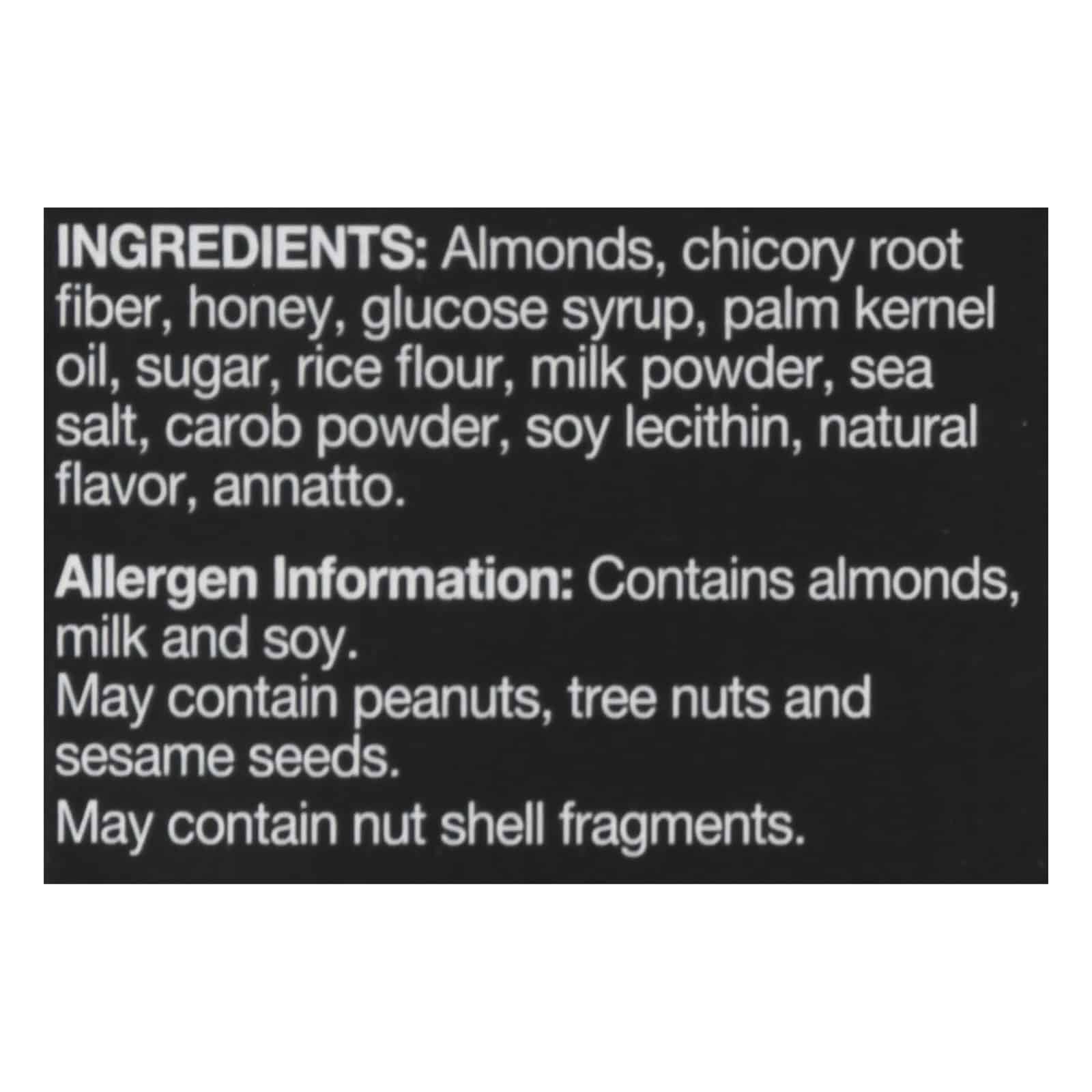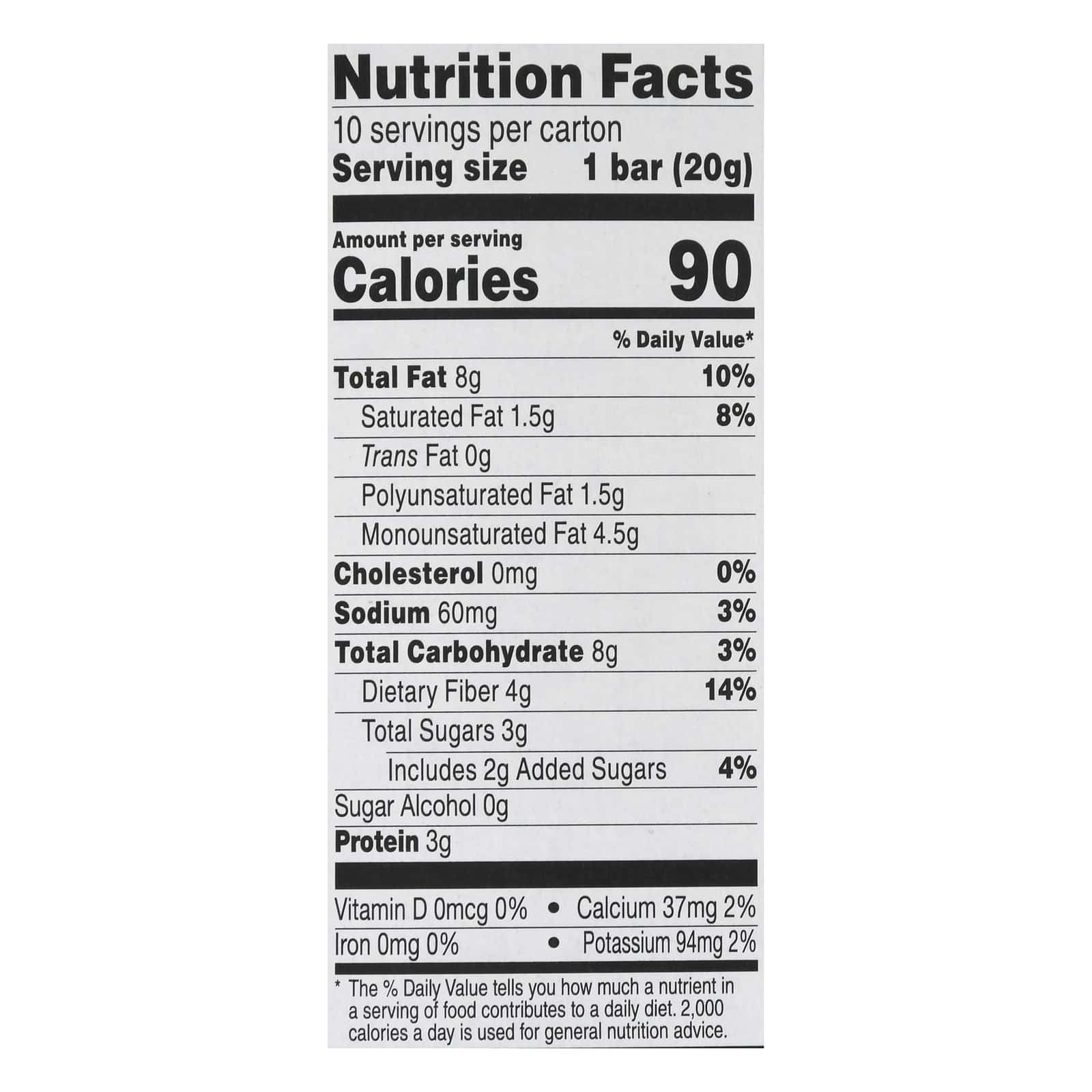 3 g sugar. 90 calories per bar. Caramel almond & sea salt contains 8 g fat per bar. Gluten free. Low sodium. Low glycemic index. No sugars alcohols. Good source of fiber. No genetically engineered ingredients. New single flavor pack. No. 1 ingredient almonds. Ingredients you can see & pronounce. Do the kind thing for your body, your taste buds & your world. kindsnacks.com. Instagram. Twitter. Facebook. (at)kindsnacks. FSC: Recycled – Packaging. Recycle this carton. Made in U.S.A. with domestic and imported ingredients.