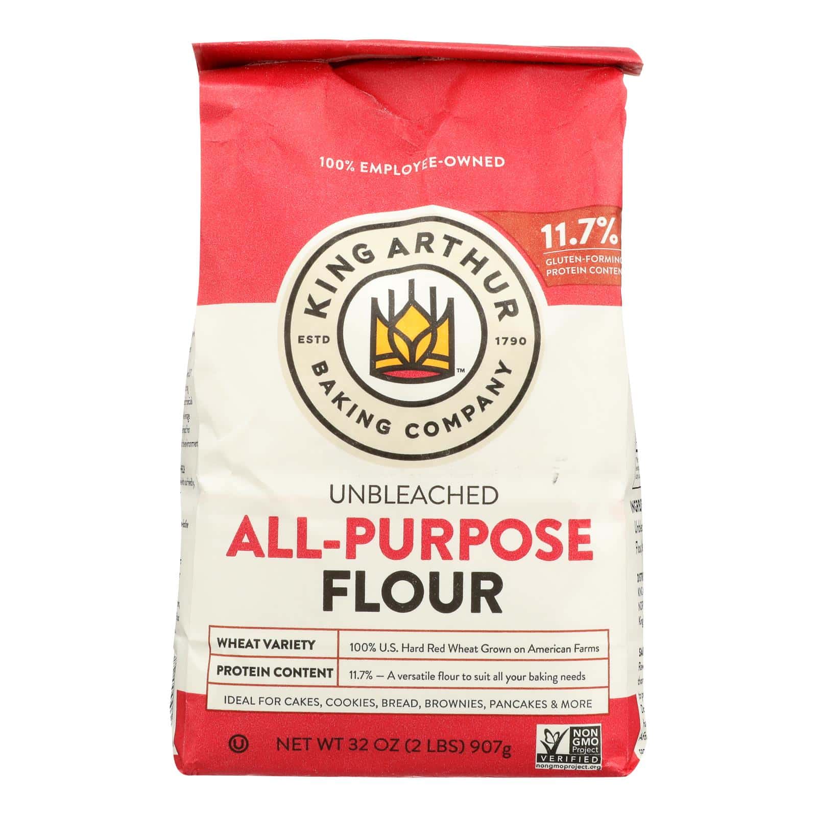 KING ARTHUR FLOUR ALL-PURPOSE UNBLEACHED FLOUR IS A VERSATILE PREMIUM FLOUR MILLED FROM 100% AMERICAN WHEAT. OUR FLOUR IS COMPLETELY KOSHER AND NON-GMO. ADDITIONALLY, OUR FLOUR IS NEVER BROMATED AND CONTAINS NO PRESERVATIVES. THE KING ARTHUR FLOUR COMPANY HAS BEEN BAKING WITH JOY SINCE 1970. WE LOVE WHAT WE DO, AND IT SHOWS THROUGH OUR PRODUCTS. INCLUDED IS ONE 2 LB. BAG OF KING ARTHUR FLOUR ALL-PURPOSE UNBLEACHED FLOUR.