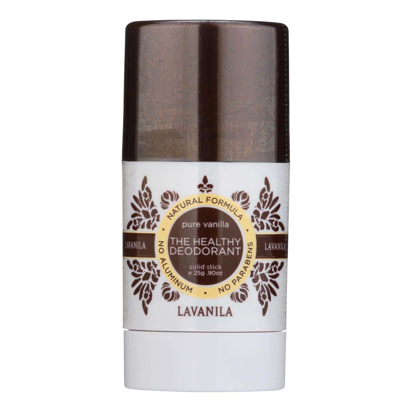 LAVANILLA LABORATORIES THE HEALTHY DEODORANT PURE VANILLA SOLID STICK IS 100% NATURAL. THIS 0.90 OZ. SOLID DEODORANT STICK CONTAINS ALOE, TEA TREE AND GOJI BERRY EXTRACTS. THIS WHOLESOME DEODORANT IS RECOMMENDED BY DERMATOLOGISTS AND CONTAINS NO HARSH CHEMICALS. OUR CLINICALLY TESTED FORMULA IS FREE FROM PHTHALATES, PARABENS, SULFATES, SILICONE AND SYNTHETIC DYES.