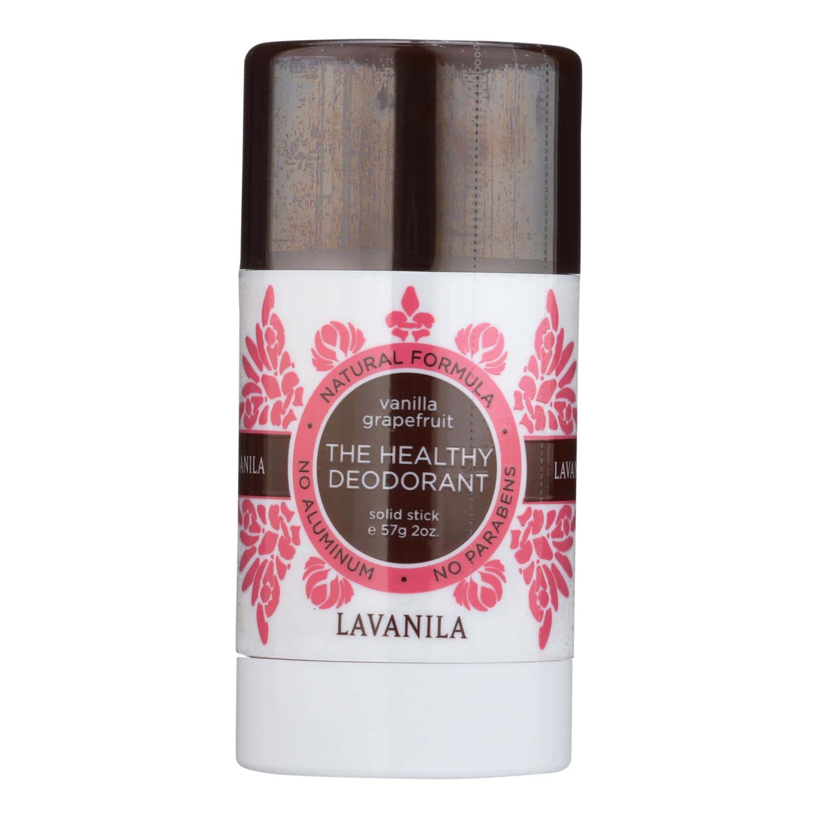 LAVANILA LABORATORIES THE HEALTHY DEODORANT, VANILLA GRAPEFRUIT, PROVIDES LONG-LASTING ODOR PROTECTION AND A FRESH SCENT WITHOUT THE USE OF PARABENS OR HARSH CHEMICALS. WITH BETA GLUCAN TECHNOLOGY, ANTIOXIDANTS AND AN ESSENTIAL OILS BLEND, THIS DEODORANT KEEPS YOU CONFIDENT WHILE NOURISHING YOUR SKIN. ENJOY DEPENDABLE FRESHNESS FROM 100% ALL-NATURAL INGREDIENTS. THIS IS A 2 OZ. STICK OF DEODORANT.