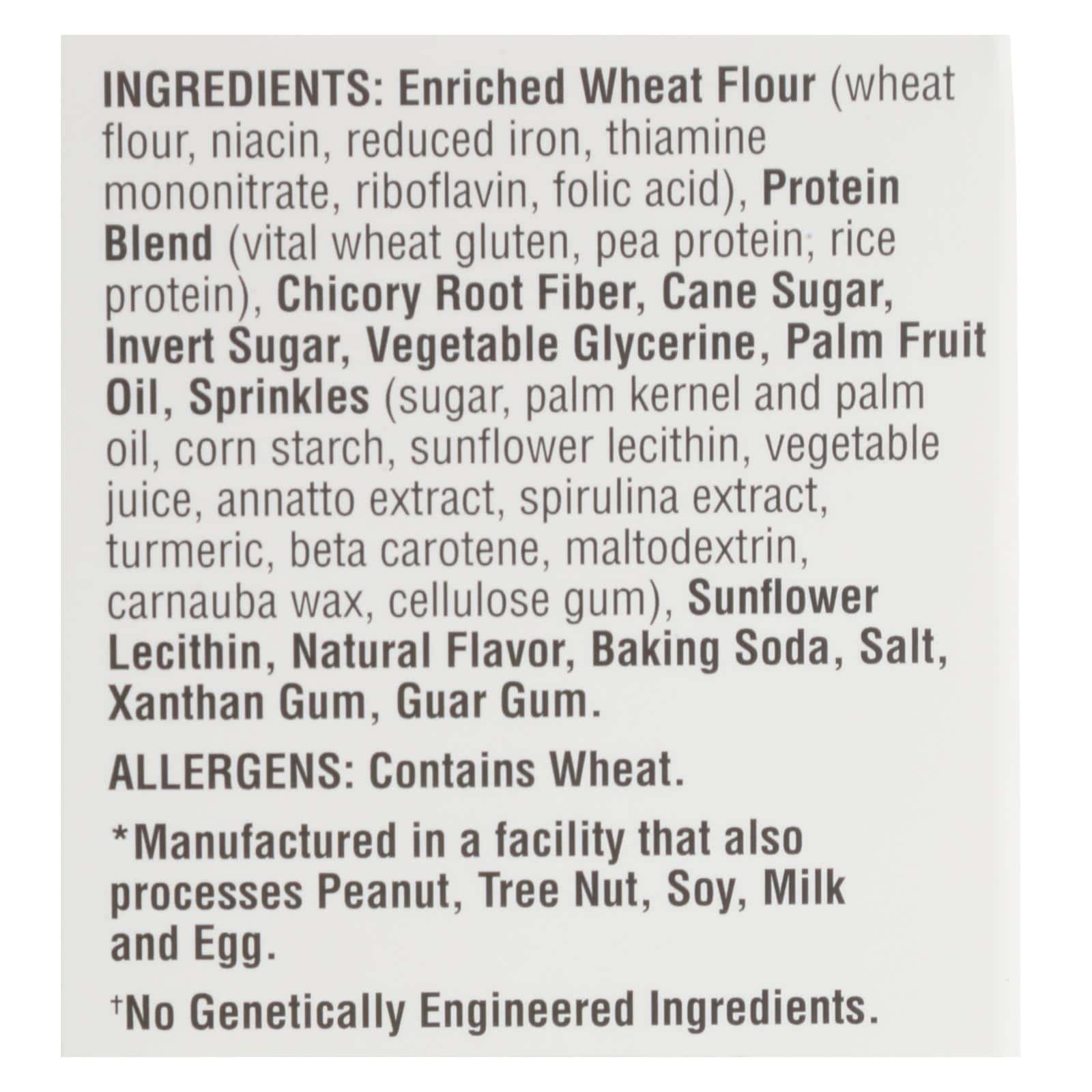 LENNY & LARRY’S COMPLETE BIRTHDAY CAKE COOKIE IS MADE WITH PROTEIN-RICH GOLDEN BATTER THAT PROVIDES EVERYTHING YOU NEED ANYTIME YOU NEED A PICK-ME-UP. THIS COOKIE ISN?T JUST TOPPED WITH COLORFUL RAINBOW SPRINKLES, IT?S FILLED WITH THEM FOR A SWEET AND PLAYFUL CRUNCH IN EVERY BITE. EACH COOKIE IS PACKED WITH 8 G. OF PROTEIN, 5 G. OF FIBER AND 0 G. OF TRANS FATS. OUR VEGAN COOKIES CONTAIN NO SOY, DAIRY OR EGG. SEE THE NUTRITION FACTS PANEL FOR ALLERGEN INFORMATION. CONTAINS ONE 4 OZ. PACK OF COMPLETE BIRTHDAY CAKE COOKIES. WE ARE ALL ABOUT CONVENIENCE SO WHEN YOU’RE ON THE GO, TAKE A COOKIE OR TWO WITH YOU. UNLIKE MOST ENERGY BARS OR PROTEIN SHAKES, OUR FLAVOR-FILLED COOKIE ACTUALLY TASTES LIKE A HOMEMADE COOKIE.