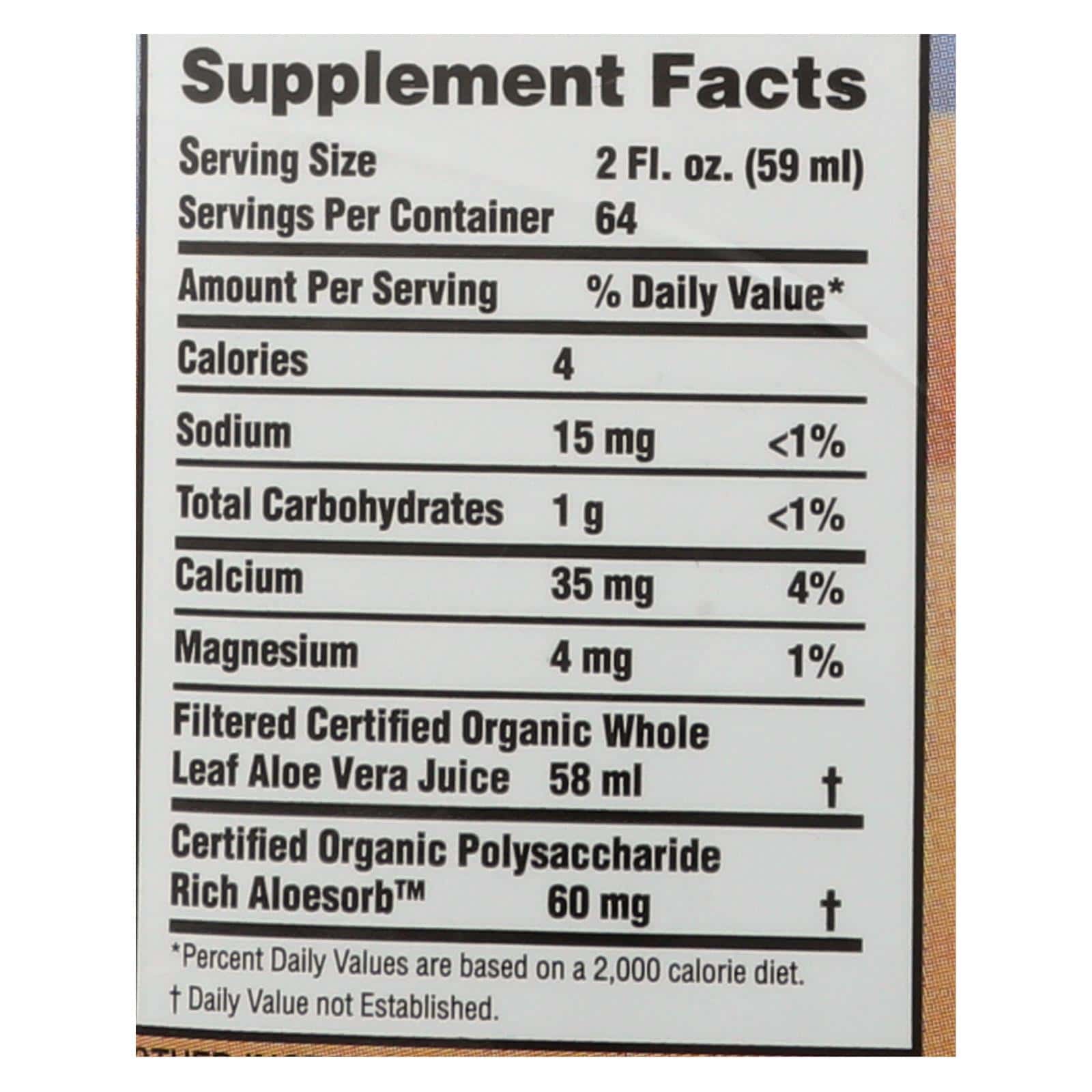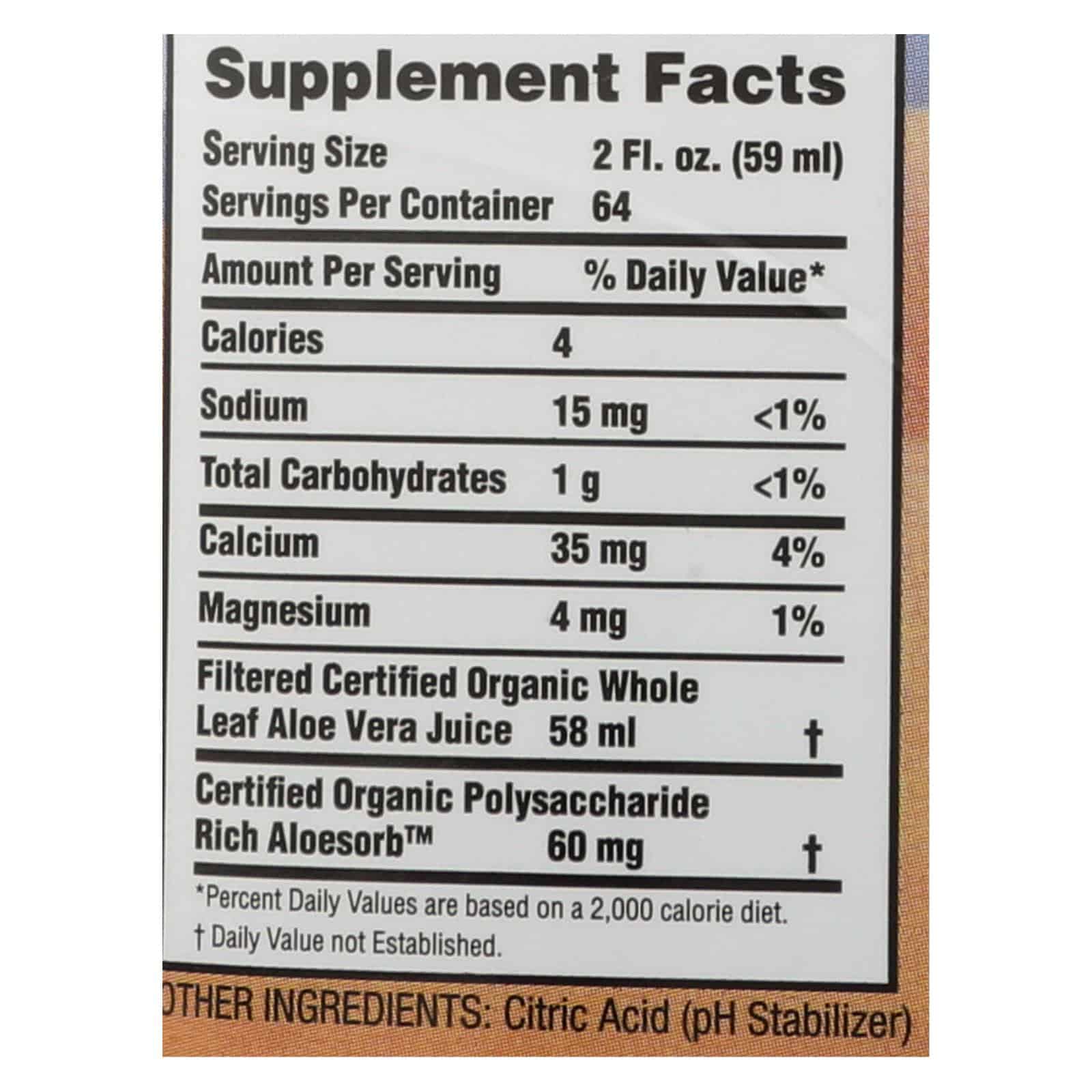 LILY OF THE DESERT WHOLE LEAF ALOE VERA JUICE IS A USDA CERTIFIED ORGANIC AND FILTERED DIETARY SUPPLEMENT DRINK THAT HAS A REFRESHING TASTE AND HELPS TO PROMOTE HEALTHY DIGESTION. THE PATENT-PENDING ALOESORB PROCESS ENHANCES ITS BIO-AVAILABILITY FOR OUTSTANDING NUTRITIONAL ABSORPTION, AND THE PRESERVATIVE-FREE BLEND SUPPORTS A HEALTHY IMMUNE SYSTEM AND ENHANCES ANTIOXIDANT SUPPORT. THIS BOTTLE CONTAINS 128 OZ. OF WHOLE LEAF ALOE VERA JUICE.