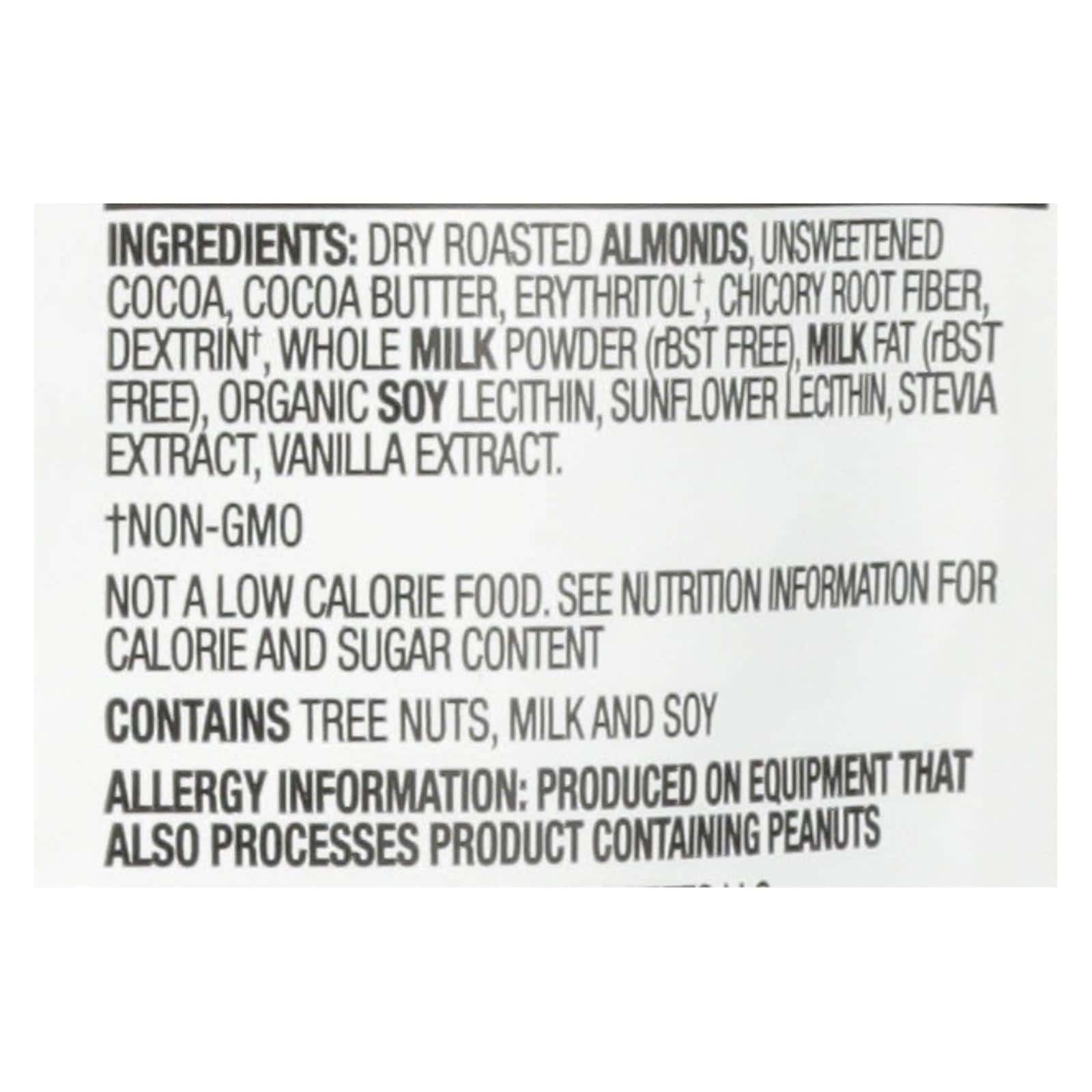 Milk chocolate style covered almonds. 1 g sugar. Certified gluten-free. No sugar added. Not a low calorie food. See nutrition information for calorie and sugar content. New. Less sugar. Sweet life. Stevia sweetened. Move over sugar, we’ll take it from here. We decided our chocolate was too good to let added sugar get in the way, and so we created a whole line of unbelievable treats botanically-sweetened with stevia. And you know what happened? Life. Got. Sweeter. Creamy, crunchy, and here for the party, our Milk Chocolate Style covered almonds are guaranteed to get you an invite back (even if you’re already at your place). Less sugar. Sweet life. Sweet & creamy. Welcome to the sweet life. www.info.fairtrade.net. lilyssweets.com. Visit www.info.fairtrade.net. Fair trade. Cocoa, Cocoa Butter, Vanilla: Traded in compliance with fairtrade standards, total 20%. Visit www.info.fairtrade.net.