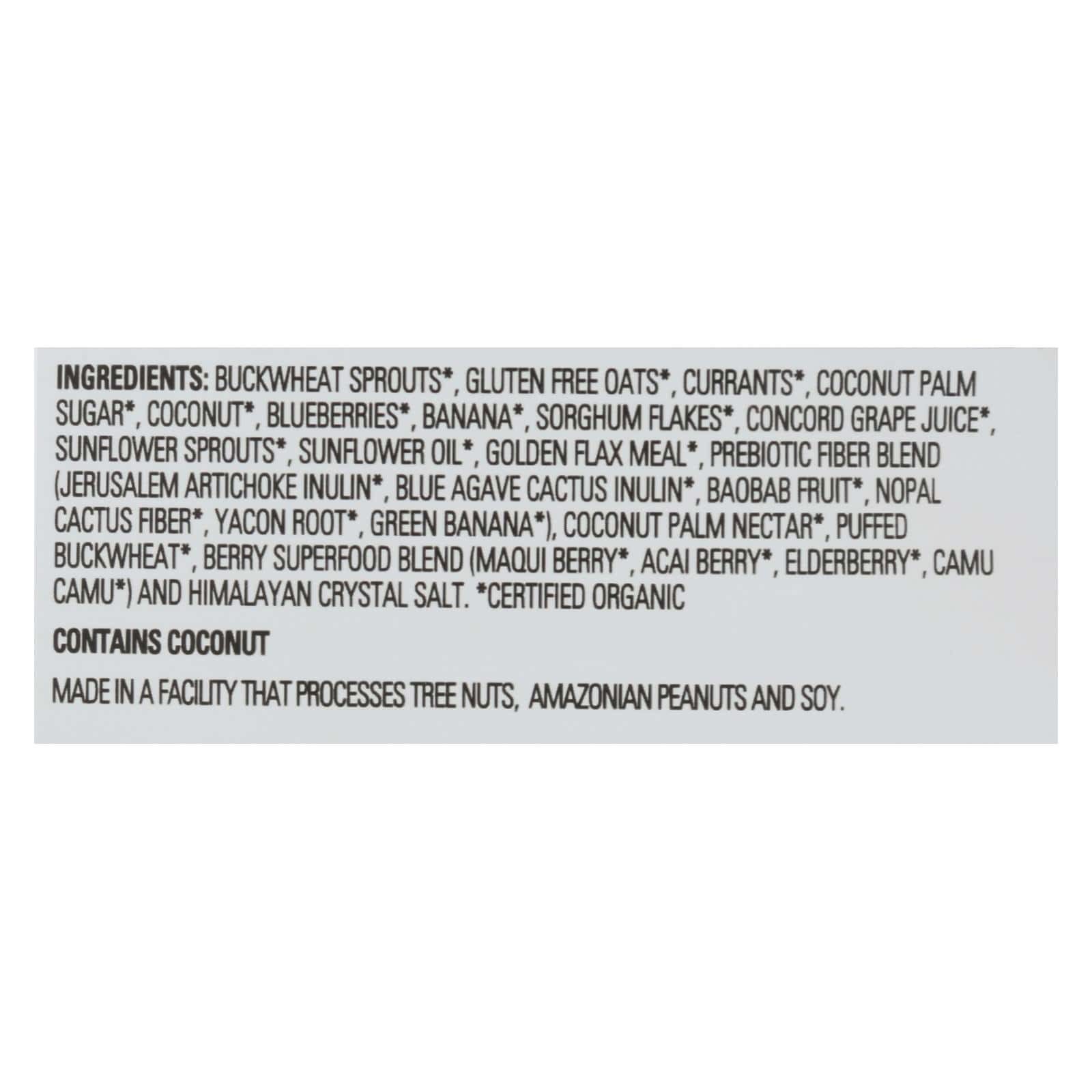 LIVING INTENTIONS ACTIVATED SUPERFOOD CEREAL PROVIDES A NEW AND HEALTHY WAY TO START YOUR DAY. EVERY BITE OF THIS BLUEBERRY BLAST FLAVORED CEREAL CONTAINS BLUEBERRIES, SWEET CURRANTS AND THE SUPERFOOD GOODNESS OF EXOTIC BERRIES LIKE ACAI, MAQUI AND ELDERBERRY. THIS SUPERFOOD CEREAL ALSO CONTAINS LIVE AND ACTIVE PROBIOTIC CULTURES TO SUPPORT IMMUNE HEALTH, DIGESTIVE FUNCTION AND PROTEIN UTILIZATION. THIS CEREAL IS GLUTEN-FREE, VEGAN, KOSHER, NON-GMO AND USDA CERTIFIED ORGANIC. EACH BAG OF LIVING INTENTIONS ACTIVATED SUPERFOOD CEREAL, BLUEBERRY BLAST CONTAINS 9 OZ. OF PRODUCT. SEE NUTRITION FACTS PANEL FOR ALLERGENS.