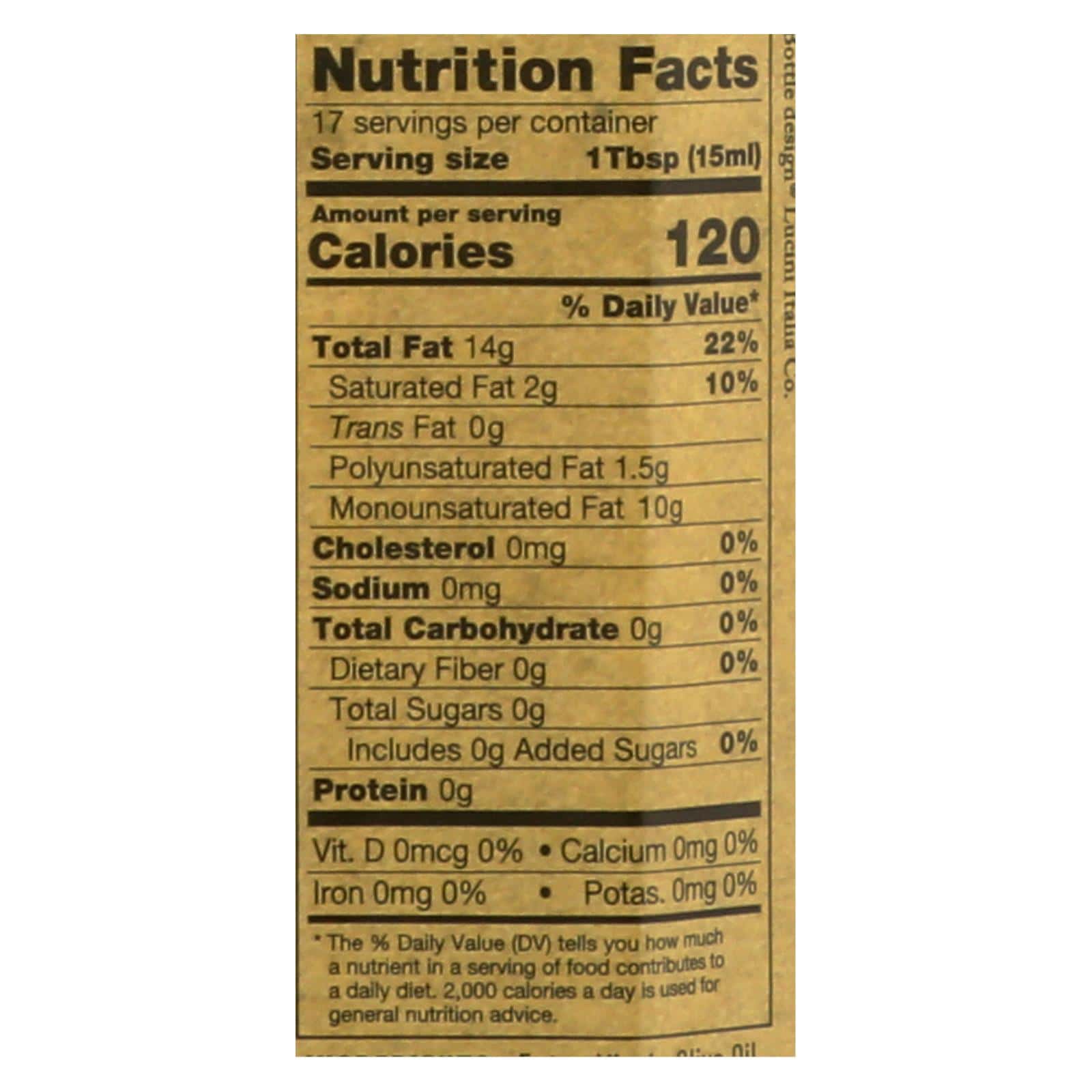 Handcrafted. Estate grown. 100% Italian harvest. First cold press. Essential oil from fresh Tuscan basil. Pressed & bottled at peak flavor. Select harvest. Infused with 100% natural essential oil. Inspired by the quintessential flavor of summer in Northern Italy, Lucini Tuscan Basil Extra Virgin Olive Oil is made using only the most cared-for Italian olives pressed and infused with the purest essential oil extracted from fresh Tuscan basil. This signature estate flavor profile balances the delicate sweetness of basil with the green and peppery finish of extra virgin olive oil. Cooks who rely on high-quality extra virgin olive oil for its singular ability to enhance the flavors and aroma of food will enjoy adding flavor dimension to favorite recipes. Balanced, not overpowering, this step-saving artisan oil is a healthful addition to any pantry. Use Tuscan Basil Extra Virgin Olive Oil for sautes, eggs or grilled chicken. Drizzle on fresh mozzarella & tomatoes.