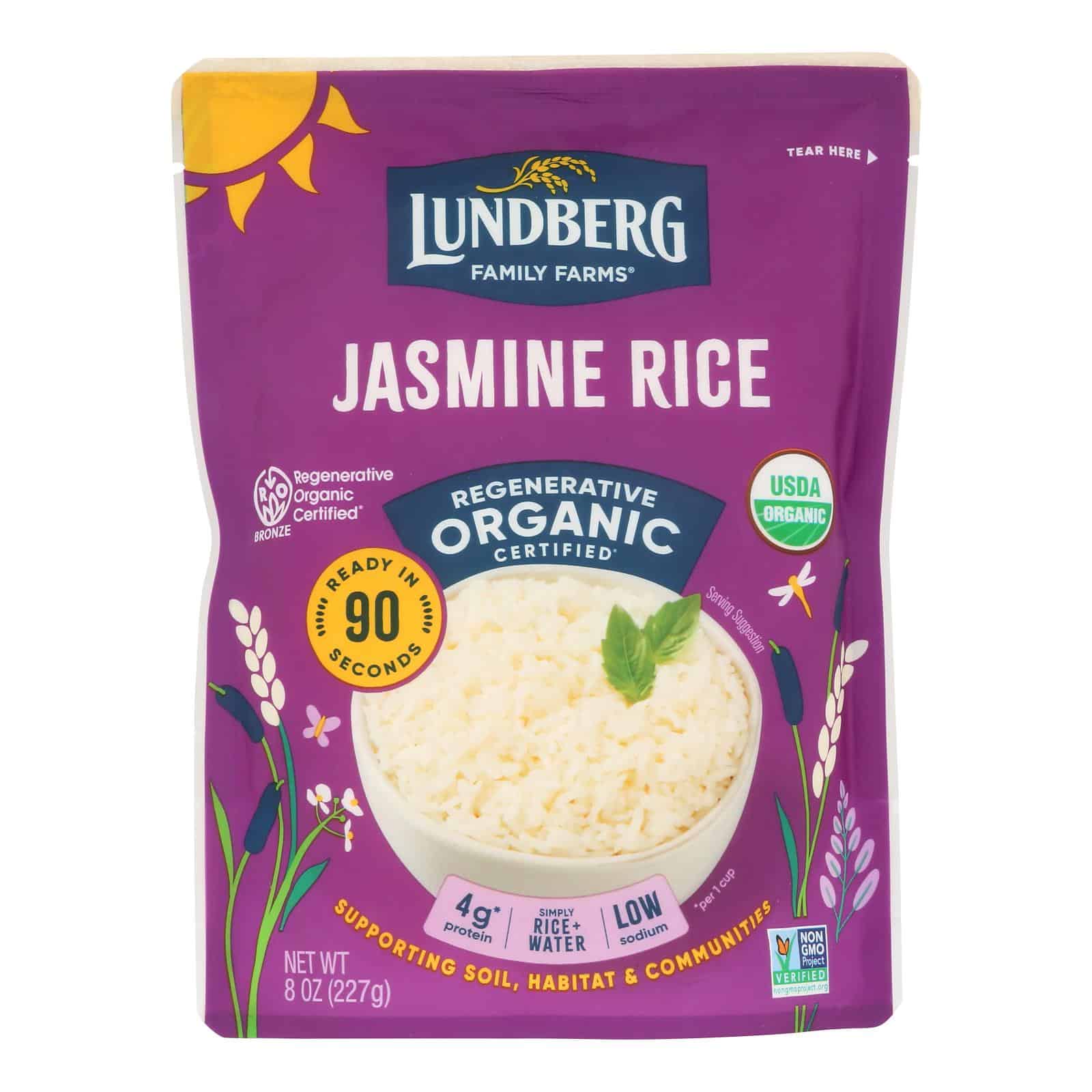 LUNDBERG FAMILY FARMS? ORGANIC WHITE JASMINE THAI HOM MALI STEAMED RICE IS SOURCED FROM SMALL, REMOTE FARMING COMMUNITIES IN THAILAND. THE AROMATIC FRAGRANCE, SLIGHTLY SWEET FLAVOR AND TEXTURE ARE UNIQUE TO RICE GROWN IN THIS PART OF THE WORLD. PLUS, YOUR DELICIOUS SIDE DISH WILL BE READY IN ONLY 90 SECONDS. WE ARE PROUD TO SUPPORT FAIR TRADE WITH OUR THAI FARMER PARTNERSHIP. SINCE 1937, LUNDBERG HAS BEEN DEDICATED TO BRINGING THE BEST-TASTING, FINEST-QUALITY RICE PRODUCTS TO OUR CUSTOMERS. INCLUDES ONE 8 OZ. PACKAGE (ABOUT 2 SERVINGS) OF RICE.