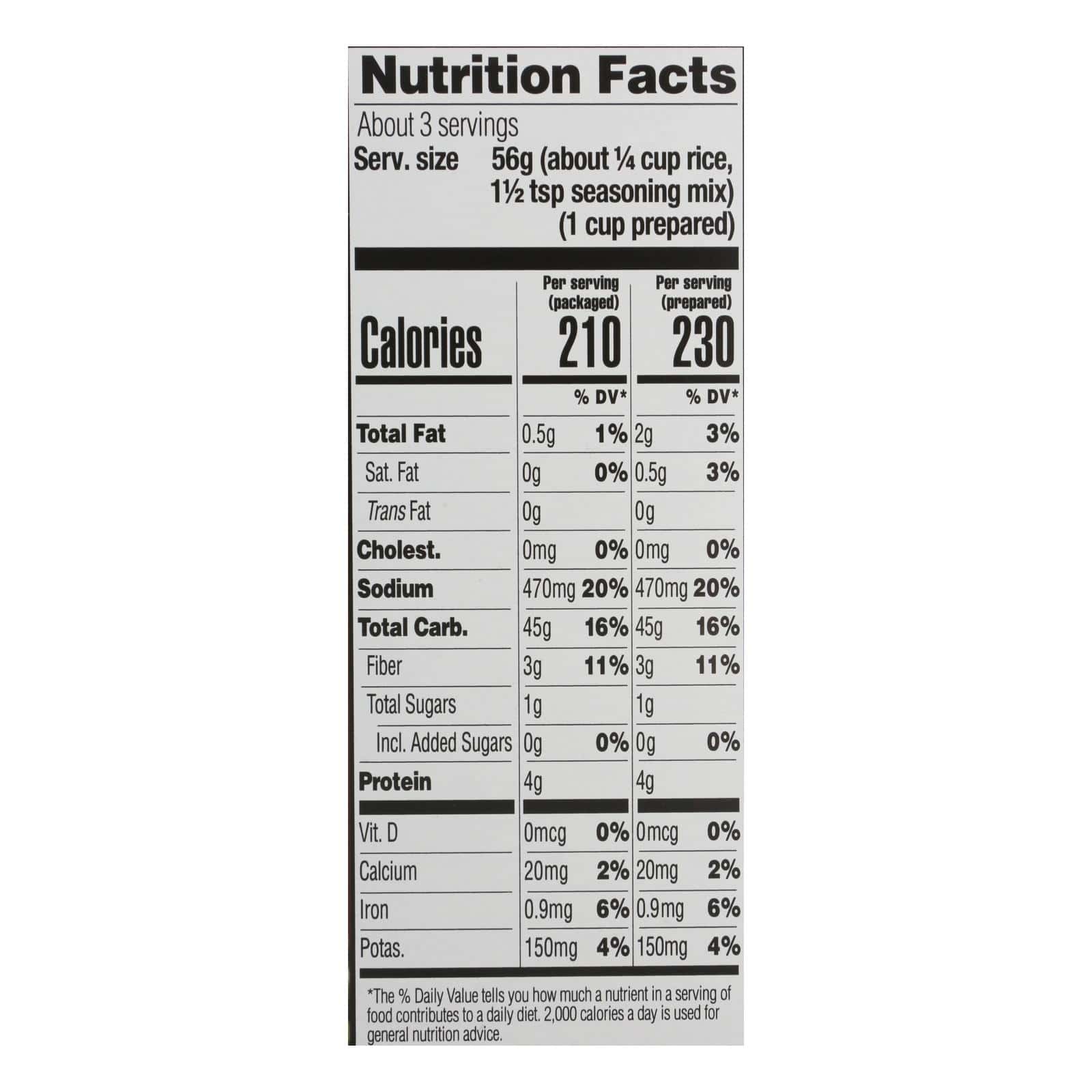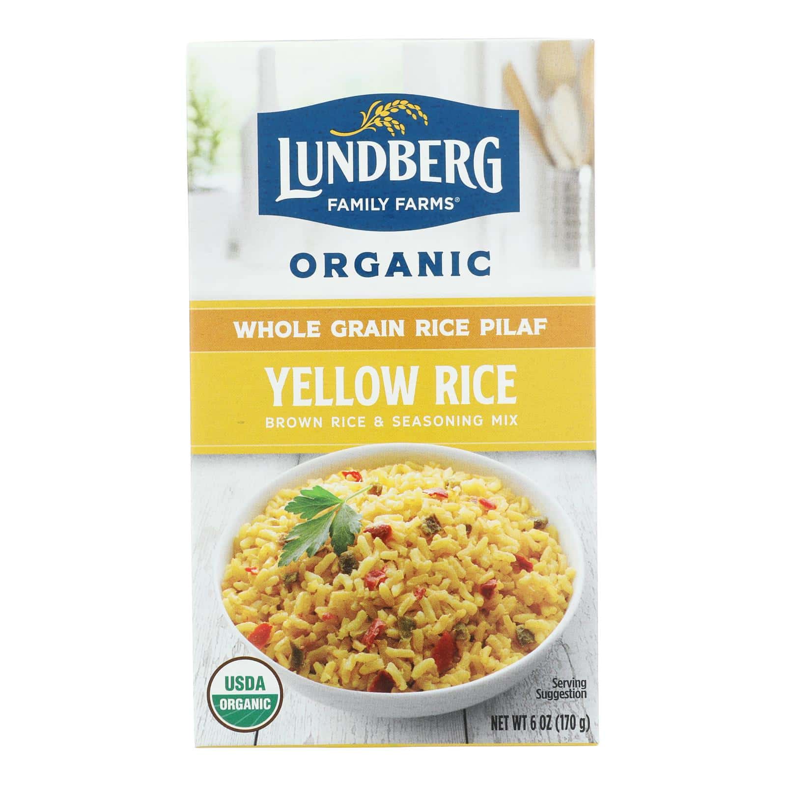 LUNDBERG FAMILY FARMS WHOLE GRAIN RICE & SEASONING MIX, YELLOW RICE IS A FINE WAY TO ADD HEALTHY, DELICIOUS RICE TO YOUR MEALS. ORGANIC, KOSHER, NON-GMO WHOLE GRAIN AND GLUTEN FREE, THIS RICE IS MADE RIGHT FOR HEALTH-CONSCIOUS FAMILIES. EVERY BOX OF LUNDBERG FAMILY FARMS WHOLE GRAIN RICE & SEASONING MIX CONTAINS 6 OZ. OF PRODUCT AND ABOUT THREE SERVINGS PER CONTAINER, 210 CALORIES PER SERVING. SEE NUTRITION FACTS PANEL FOR ALLERGENS.