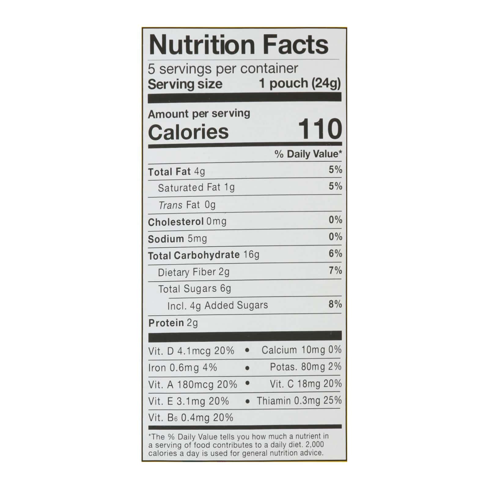 USDA Organic. Certified Organic by Pro-Cert. Nut free. Certified Gluten free by GFCO. Whole Grain: 10 g or more per serving. Eat 48 g or more of whole grains daily. WholeGrainsCouncil.org. Certified Vegan. vegan.org. Made in a dedicated peanut and tree nut free facility. Non-GMO Project verified. nongmoproject.org. 1 extra pack. Now 5 packs! Free from nuts & safe for schools. Nutrients from vegetables. We believe that good food is for everyone. It’s why we source organic ingredients and bake our delicious snacks in an allergen-free facility. We work hard as a company to put sustainability first to support out environment. It takes rigor to rewrite the rules, but the future is worth it. Happy snacking! Nima, Sahba, Salma. Vitamin from vegetable extracts. Allergy friendly. Dedicated facility free from the following common allergens: peanut; tree nuts; wheat & gluten; soy; dairy; egg; sesame; fish & shellfish. What makes this a MadeGood product? Contains nutrients from vegetables. www.madegoodfoods.com. Product of Canada.