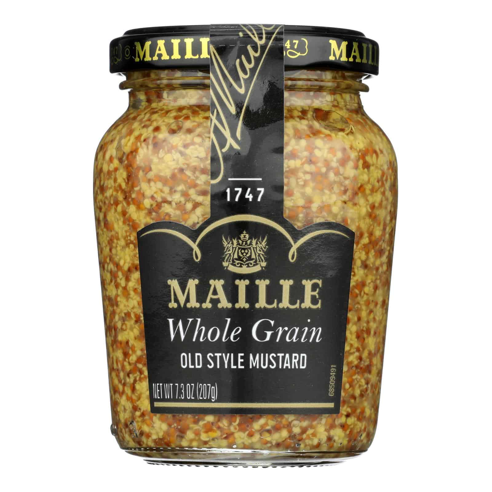 MAILLE OLD STYLE WHOLE GRAIN MUSTARD IS A DELICIOUS CONDIMENT, REMINISCENT OF AN OLDER TIME. MAILLE OLD STYLE WHOLE GRAIN MUSTARD IS MADE WITH A MINIMAL AMOUNT OF NATURAL INGREDIENTS, LEAVING IT FREE OF UNNECESSARY ADDITIVES OR UNNATURAL INGREDIENTS. THIS PRODUCT IS KOSHER CERTIFIED. EACH JAR OF MAILLE OLD STYLE WHOLE GRAIN MUSTARD WEIGHS 7.3 OZ. WITH 42 SERVINGS PER JAR AND 5 CALORIES PER SERVING. REFRIGERATE AFTER OPENING. SEE NUTRITION FACTS PANEL FOR ALLERGENS.