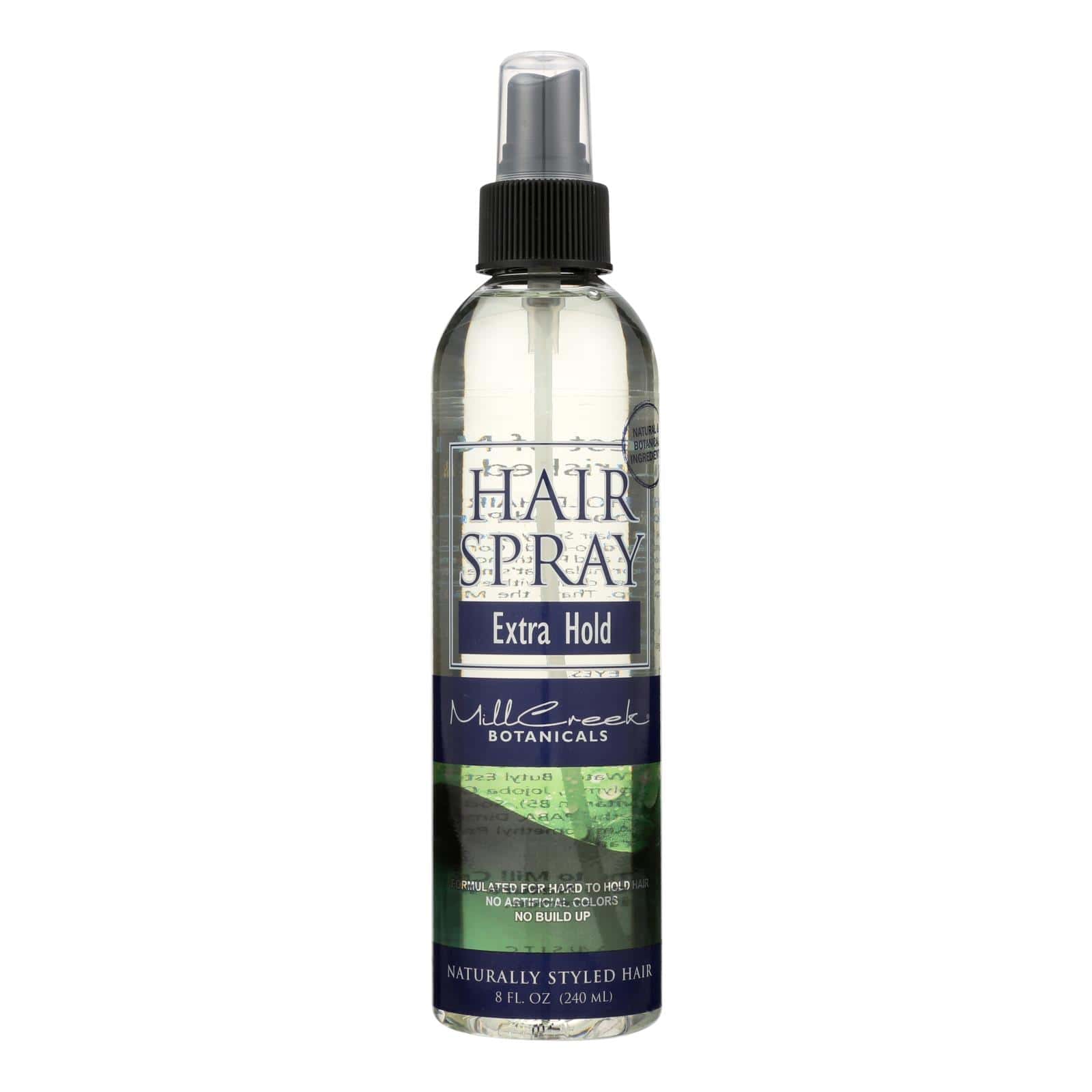 MILL CREEK BOTANICALS EXTRA HOLD HAIR SPRAY MAKES MANAGING YOUR HAIR STYLE MUCH EASIER. SIMPLY STYLE YOUR HAIR AS DESIRED AND SPRAY ON FOR A STRONG AND FIRM HOLD WITH A NATURAL LOOK. OUR SPRAY FEATURES JOJOBA AND PANTHENOL AND IS FORMULATED FOR HARD TO HOLD HAIR WITH NO STICKY BUILDUP. THIS BOTTLE CONTAINS 8 FL. OZ. OF EXTRA HOLD HAIR SPRAY.