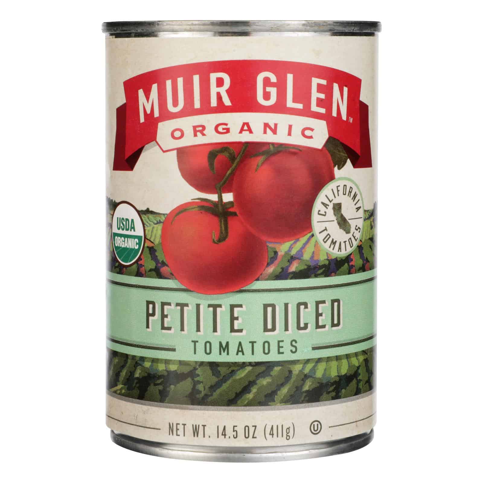 MUIR GLEN PETITE DICED TOMATOES ADD FRESHNESS TO ANY RECIPE WITHOUT EXTRA PRESERVATIVES. THESE TOMATOES ARE VERY VERSATILE AND ARE PERFECT IN SPAGHETTI SAUCE, CHILI, SOUP OR DIPS. EACH 14.5 OZ. ORGANIC CAN IS A GREAT ADDITION TO YOUR FAVORITE MEALS. OUR TOMATOES ARE FRESH AND HAVE AN AMAZING TASTE. FARM TO FORK, OUR TOMATOES BRING BRIGHT, BOLD FLAVOR TO THE TABLE. GROWN ON ORGANIC FARMS WHERE THEY’RE DRENCHED IN CALIFORNIA SUNSHINE, THE TOMATOES ARE CANNED WITHIN EIGHT HOURS OF BEING PICKED. IT’S HOW WE BRING FLAVOR TO FOOD, ONE TOMATO AT A TIME.