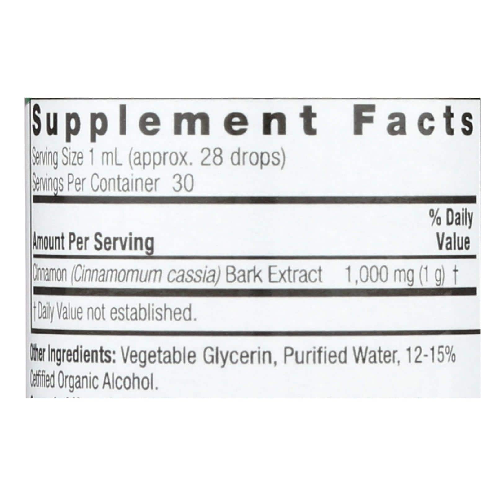 NATURE’S ANSWER CINNAMON HERBAL SUPPLEMENT PROVIDES 1,000 MG. OF CINNAMOMUM CASSIA BARK EXTRACT IN AN EASY-TO-TAKE LIQUID FORMAT, IDEAL FOR PEOPLE WHO HAVE DIFFICULTY SWALLOWING PILLS. THE INCLUDED DROPPER MAKES IT SIMPLE TO DISPENSE THE DESIRED AMOUNT OF OUR FORMULA. WE SUGGEST MIXING 14 TO 28 DROPS IN A SMALL AMOUNT OF WATER AND DRINKING THE SOLUTION UP TO THREE TIMES PER DAY. OUR 1 FL. OZ. BOTTLE CONTAINS 30 SERVINGS OF 28 DROPS EACH.