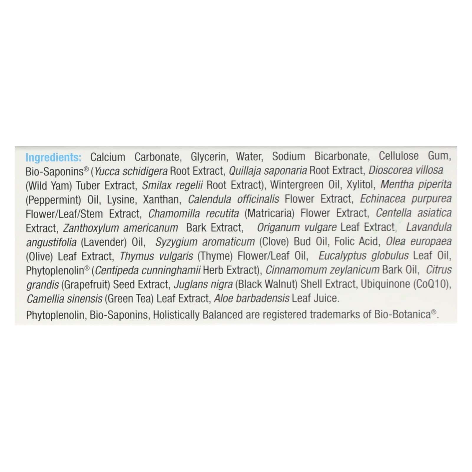 NATURE’S ANSWER PERIOBRITE WINTERMINT NATURAL BRIGHTENING TOOTHPASTE HELPS CLEAN YOUR TEETH AND GUMS WHILE OFFERING A SOOTHING EFFECT, THANKS TO THE VARIOUS WILDCRAFTED HERBS IT CONTAINS. WE HAVE INCLUDED PHYTOPLENOLIN, COQ10 AND FOLIC ACID IN OUR FORMULA TO LEAVE YOU WITH FRESH-SMELLING BREATH AND TO HELP PROMOTE HEALTHIER TEETH AND GUMS. THIS 4 OZ. TUBE OF PERIOBRITE IS FORMULATED BY A DENTIST AND IS SUITABLE FOR USE BY THE ENTIRE FAMILY.