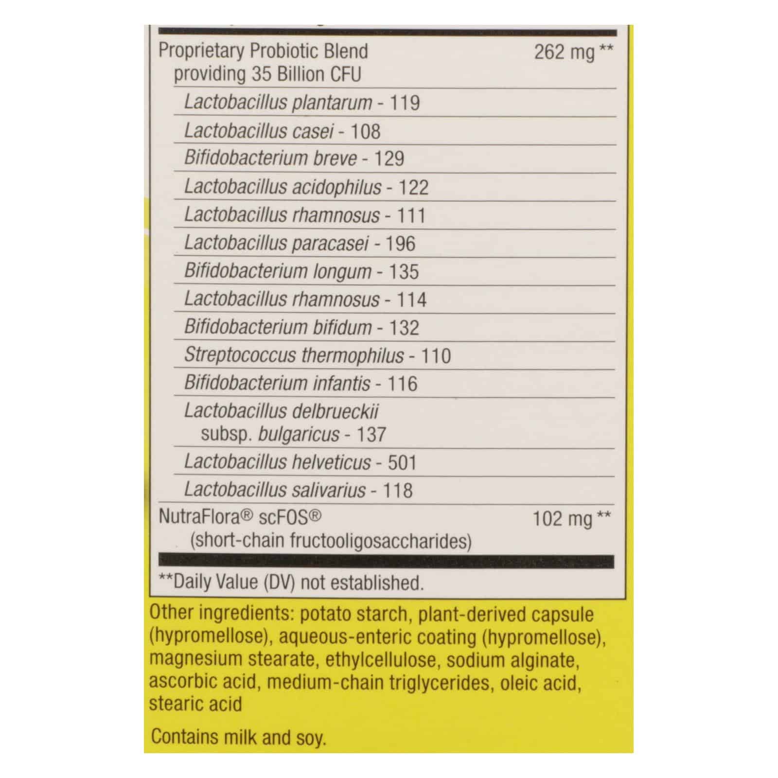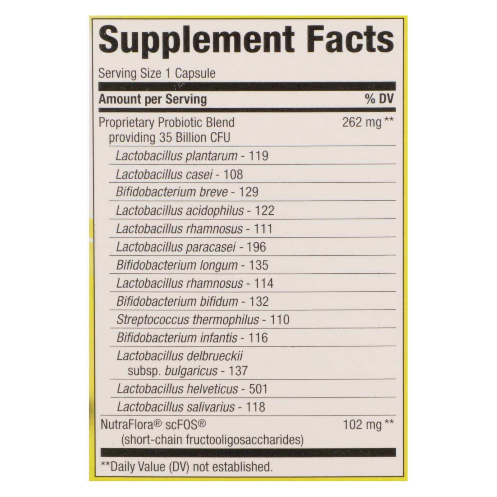 Dietary Supplement. For all ages. For healthy digestive flora. 14 probiotic strains. Plus NutraFlora scFOS synergistic action. True Identity: Lactobacillus & bifidobacterium super blend. True Release: Targeted delivery enteric-coated. True Potency: 35 billion CFU. Once daily. More strains than other brands. Replenish Microflora with Primadophilus Optima: Primadophilus Optima is the most potent (35 billion CFUs) and diverse (14 strains) delivery of probiotics for intestinal microflora. Why 14 Probiotic Strains? Like a fingerprint, each individual has a unique balance of strains in their microflora; Primadophilus Optima provides a broad diversity of strains commonly found in the human digestive tract; Each strain provides its own unique benefits. Plus NutraFlora scFOS: Unique short-chain form of FOS; Preferred food source for microflora; Promotes microflora growth & colonization; More effective than other FOS forms. Importance of Microflora: The friendly bacteria of the intestinal tract are essential to good health because they: Secrete enzymes to aid proper digestion; Produce organic compounds that inhibit the reproduction of harmful bacteria; Boost immune function. Stress, poor diet, antibiotic use and bouts with diarrhea adversely affect microflora. True Guarantee Probiotic: Exclusively backed by True Guarantee. True Potency ensures 35 billion CFUs per capsule for the entire shelf life. True Identity ensures only the strains listed on the label are found in the product. True Release enteric-coating ensures stomach acid survival and intestinal delivery. Unique Advantages of Primadophilus Optima: The most potent and diverse probiotic and prebiotic combination; 35 billion CFUs (colony forming units) per capsule of 14 synergistic strains; Designed to meet the needs of all ages; Plus NutraFlora scFOS; Suitable for vegetarians. Enhanced with NutraFlora. www.naturesway.com. (This statement has not been evaluated by the Food and Drug Administration. This product is not intended to diagnose, treat, cure or prevent any disease.) Product of Canada.