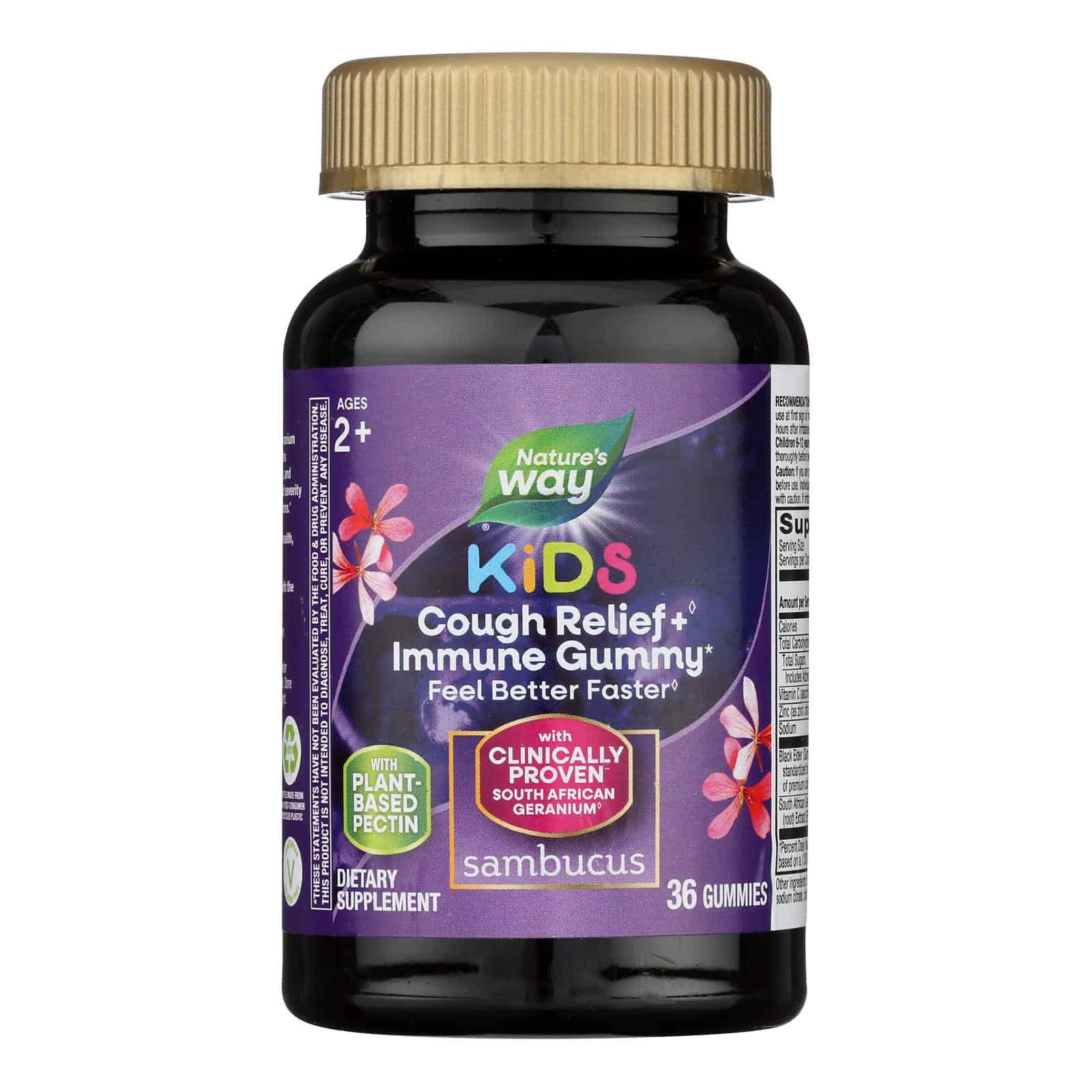 With clinically proven South African Geranium. Feel better faster (Reduces the duration and severity of minor nasal throat, and chest irritations and occasional coughs associated with hoarseness, dry throat, and irritant). New. Safe + effective. Added immune support for your child. Clinically proven South African Geranium Root Extract. Get them back faster to school and doing the things they love. Specially formulated for kids ages 2 years and older with great berry flavor.