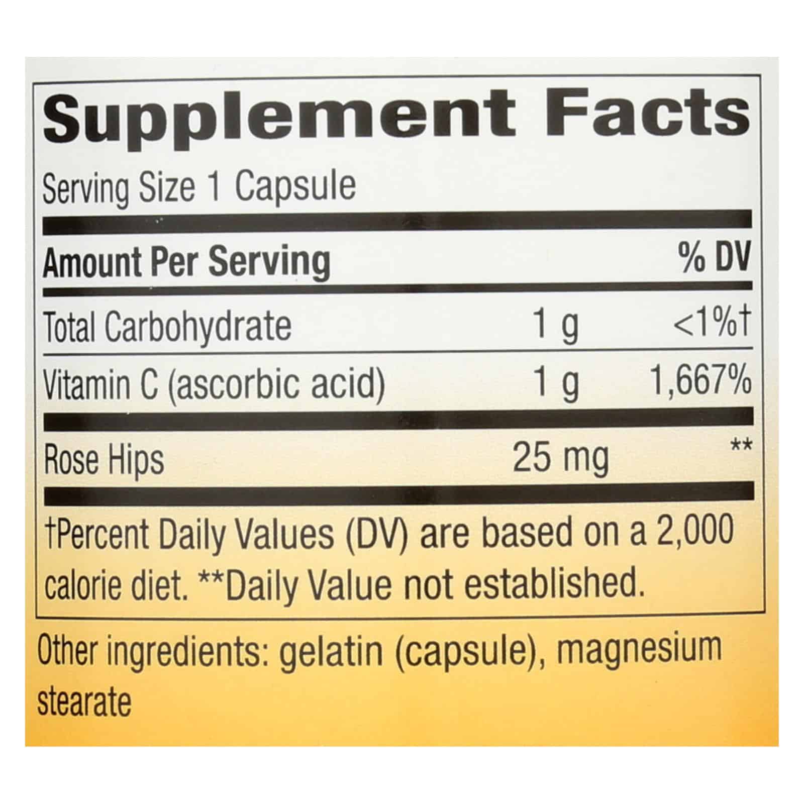 Dietary Supplement. Premium quality. Certified potency. Anti-oxidant. Health & longevity through he healing power of nature-that’s what it means to trust the leaf. Vitamin C with Rose Hips provides powerful antioxidant protection, strengthens collagen and helps maintain white blood cell function. Our vitamin C is tested and produced to certified quality standards. Did you know? Rose hips are one of the richest whole plant source of vitamin C. Nature’s Way Vitamin C contains no artificial ingredients, preservatives, yeast, milk, lactose, wheat, sugar or soy. (This statement has not been evaluated by the Food and Drug Administration. This product is not intended to diagnose, treat, cure or prevent any disease.) Visit naturesway.com. Satisfaction guaranteed.