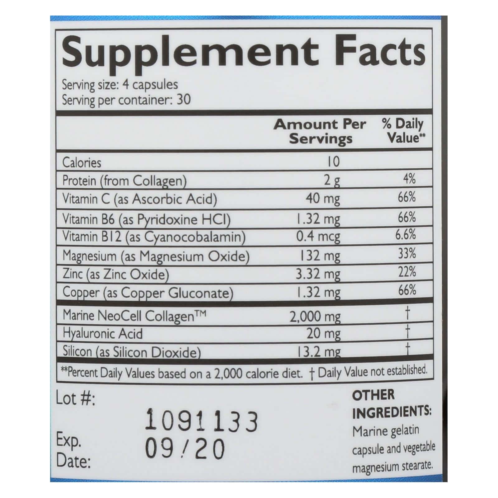 NEOCELL FISH COLLAGEN + HA IS GLUTEN-FREE AND CONTAINS NO ARTIFICIAL FLAVORS, LACTOSE, YEAST OR STARCH. SEE NUTRITION FACTS PANEL FOR ALLERGENS. INCLUDES ONE BOTTLE WITH 120 NEOCELL FISH COLLAGEN + HA CAPSULES. EACH NEOCELL PRODUCT IS DESIGNED SPECIFICALLY TO SUPPORT THE COLLAGEN SYSTEMS IN OUR BODIES SUCH AS THOSE THAT MAINTAIN VIBRANT YOUTH, RADIANT BEAUTY, AND TOTAL BODY WELLNESS.