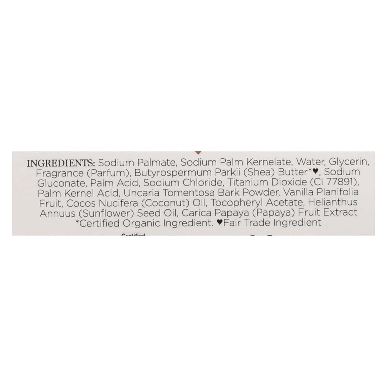 NUBIAN HERITAGE NHO COCONUT PAPAYA BAR SOAP IS MADE WITH RICH, TROPICAL, CERTIFIED ORGANIC AND FAIR-TRADE INGREDIENTS. THE COMBINATION OF PAPAYA, SHEA BUTTER, COCONUT OIL, AND VANILLA BEANS IN THIS 5 OZ BAR POLISHES AND RENEWS THE SKIN WITH EACH USE. FEEL GREAT ABOUT YOUR CHOICE IN SOAP, IT IS CRUELTY FREE AND VEGAN.