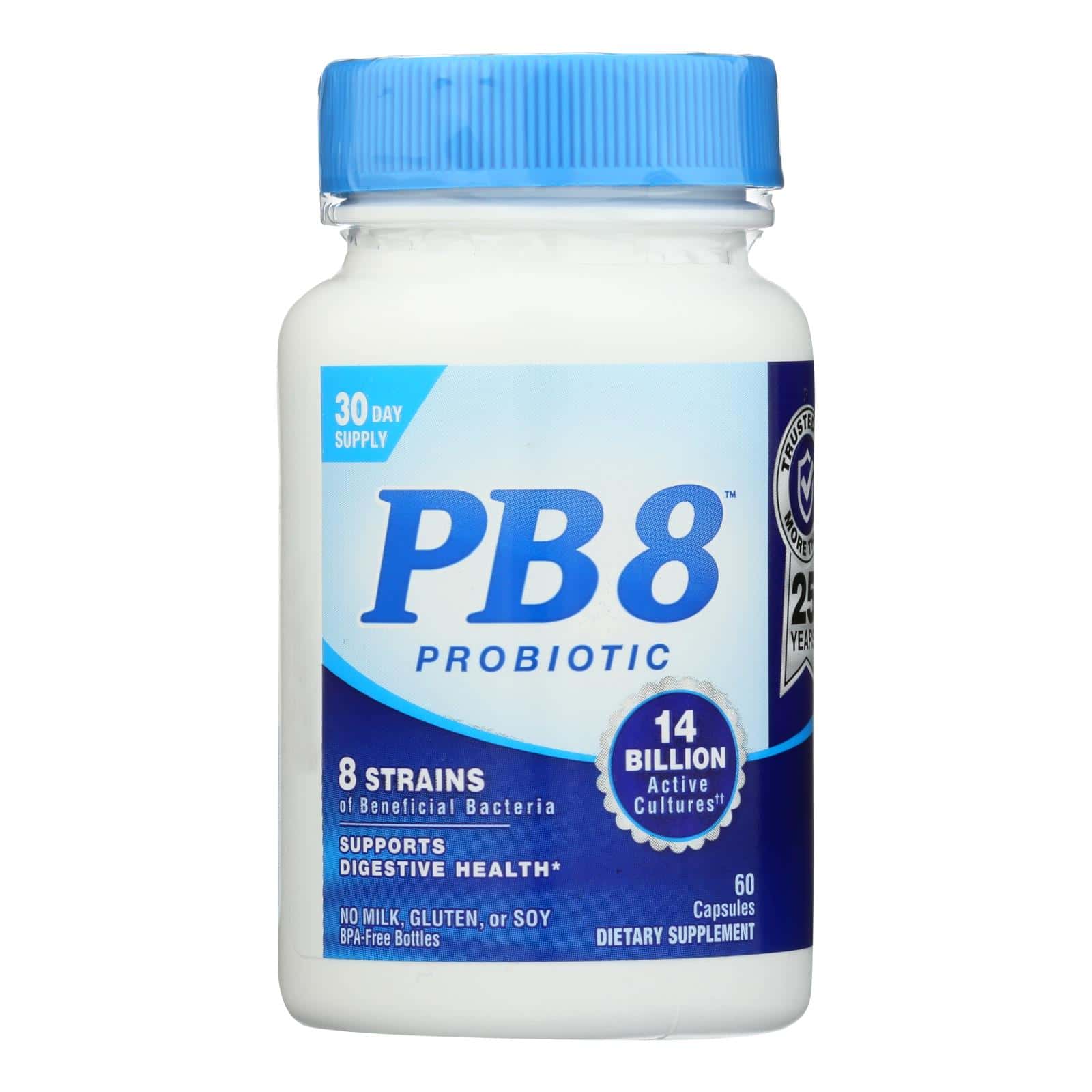 PB 8 PROBIOTIC, ORIGINAL FORMULA IS A DIETARY SUPPLEMENT FORMULATED TO PROMOTE HEALTHY DIGESTION. MADE WITH NATURAL INGREDIENTS, THIS SUPPLEMENT IS FREE OF UNNATURAL AND UNNECESSARY ADDITIVES. THIS PRODUCT IS GLUTEN FREE. EACH BOTTLE OF PB 8 PROBIOTIC, ORIGINAL FORMULA CONTAINS 60 CAPSULES WITH 30 SERVINGS PER BOTTLE.