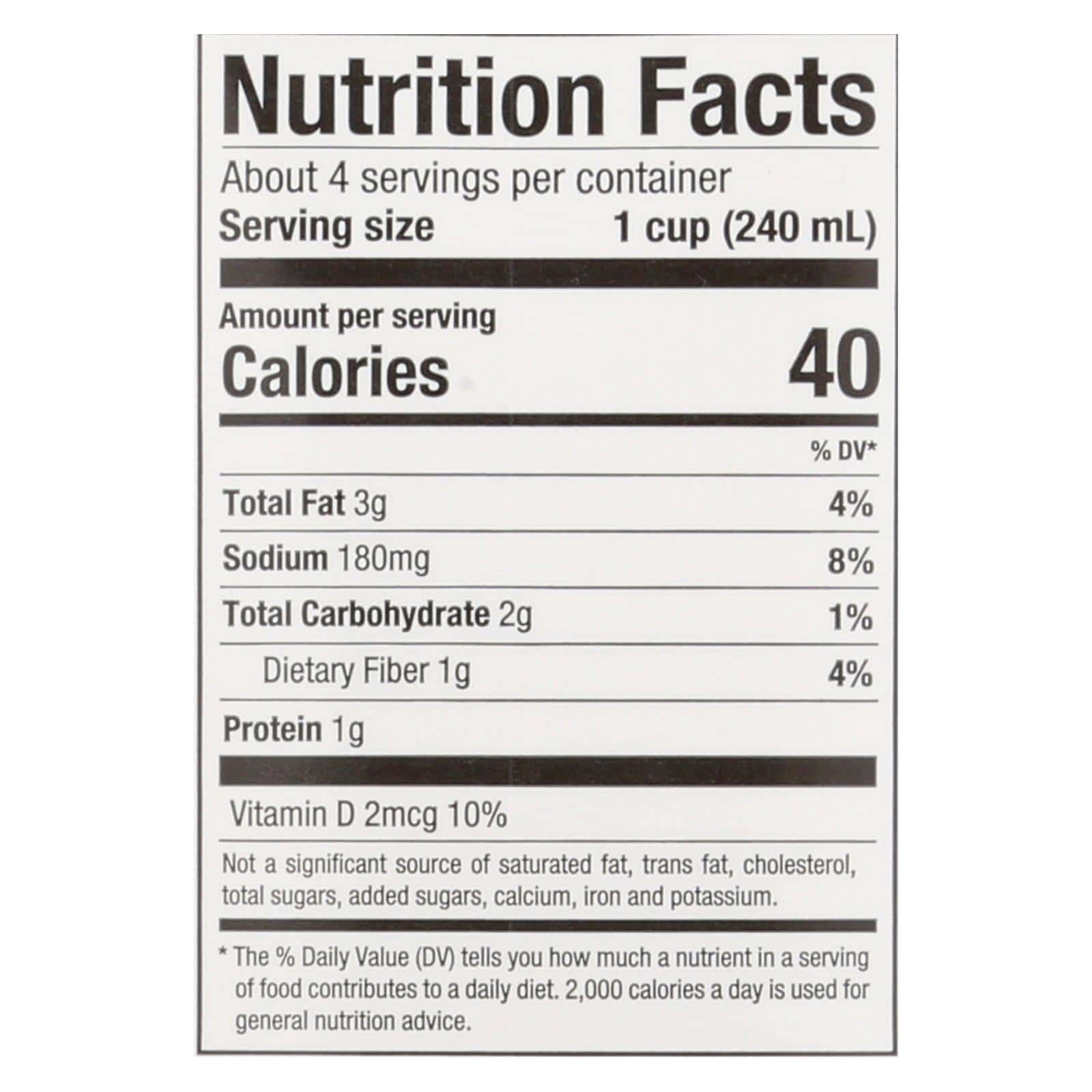 PACIFIC FOODS ALMOND BEVERAGE, ORIGINAL UNSWEETENED IS A NATURAL AND DELICIOUS BEVERAGE. MADE WITH NATURAL INGREDIENTS AND FORTIFIED WITH VITAMINS, THIS BEVERAGE IS FREE OF UNNATURAL AND UNNECESSARY ADDITIVES. THIS PRODUCT IS GLUTEN-FREE, KOSHER, ORGANIC AND VEGAN FRIENDLY. EACH CARTON OF PACIFIC FOODS ALMOND BEVERAGE, ORIGINAL UNSWEETENED CONTAINS 32 FL. OZ. OF PRODUCT WITH FOUR SERVINGS PER CARTON AND 35 CALORIES PER SERVING.