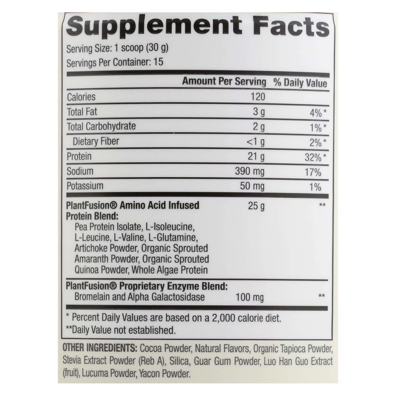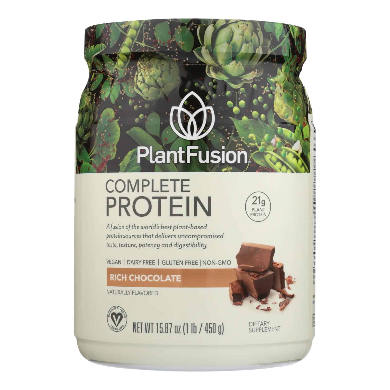 PLANTFUSION CHOCOLATE IS OUR EASILY DIGESTIBLE PLANT PROTEIN SHAKE MIX MADE FROM NATURE’S INGREDIENTS. OUR PRODUCT IS PACKED WITH 21 G. OF PROTEIN PER SERVING AND IS VEGAN AND GLUTEN-FREE. ADDITIONALLY, OUR PRODUCT IS NON-GMO, ORGANIC AND CONTAINS NO PRESERVATIVES OR ARTIFICIAL FLAVORS. INCLUDED IS ONE 1 LB. CONTAINER OF PLANTFUSION CHOCOLATE.