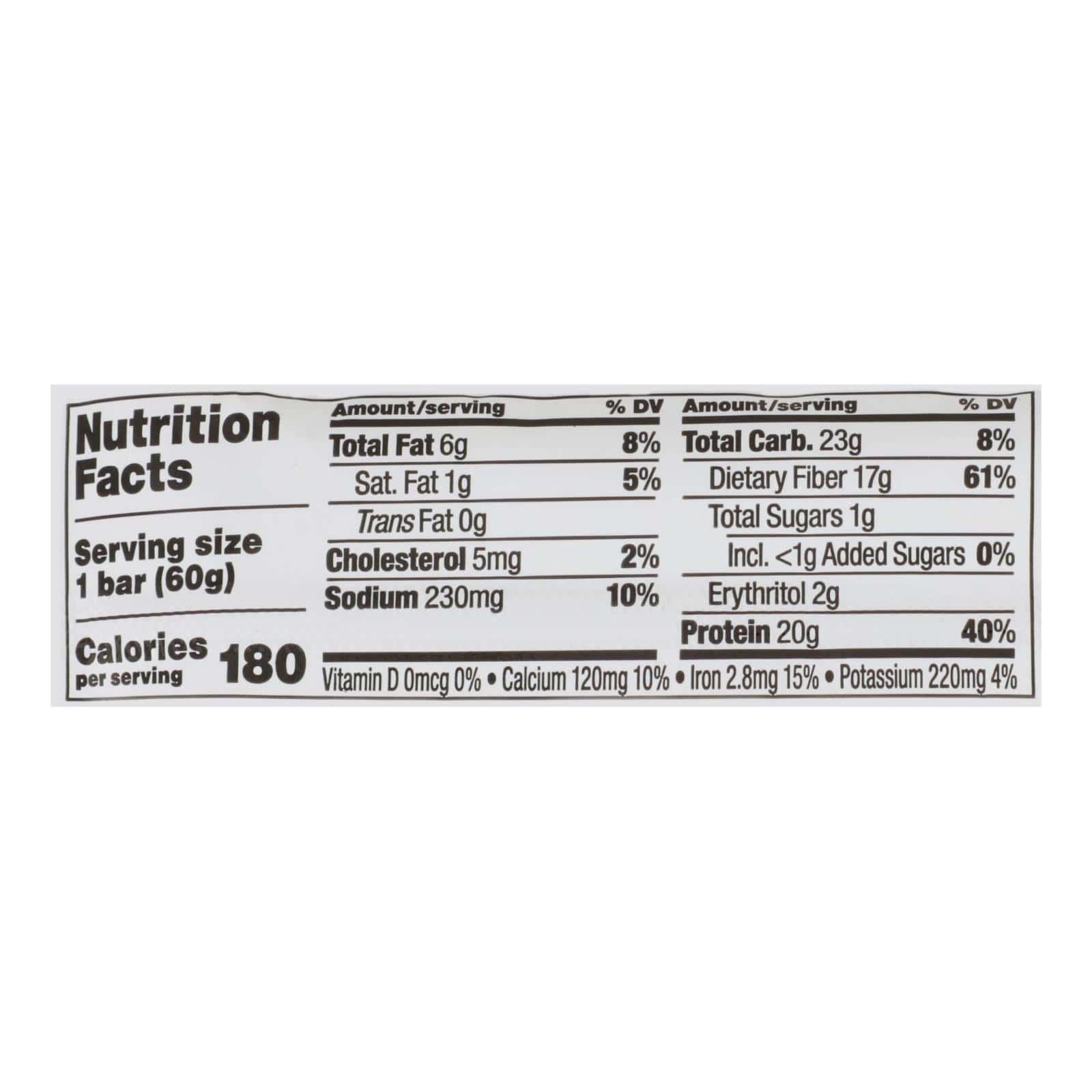 QUEST CHOCOLATE BROWNIE PROTEIN BAR IS MADE WITH A GLUTEN-FREE PROTEIN BLEND AND PREBIOTIC FIBER. SWEETENED WITH STEVIA, OUR RECIPE CONTAINS NO ADDED SUGARS. AT JUST 170 CALORIES PER SERVING, EACH 2.12 OZ. PROTEIN BAR PROVIDES 60% OF YOUR DAILY FIBER AND 40% OF YOUR DAILY PROTEIN. SEE NUTRITION FACTS PANEL FOR ALLERGENS.