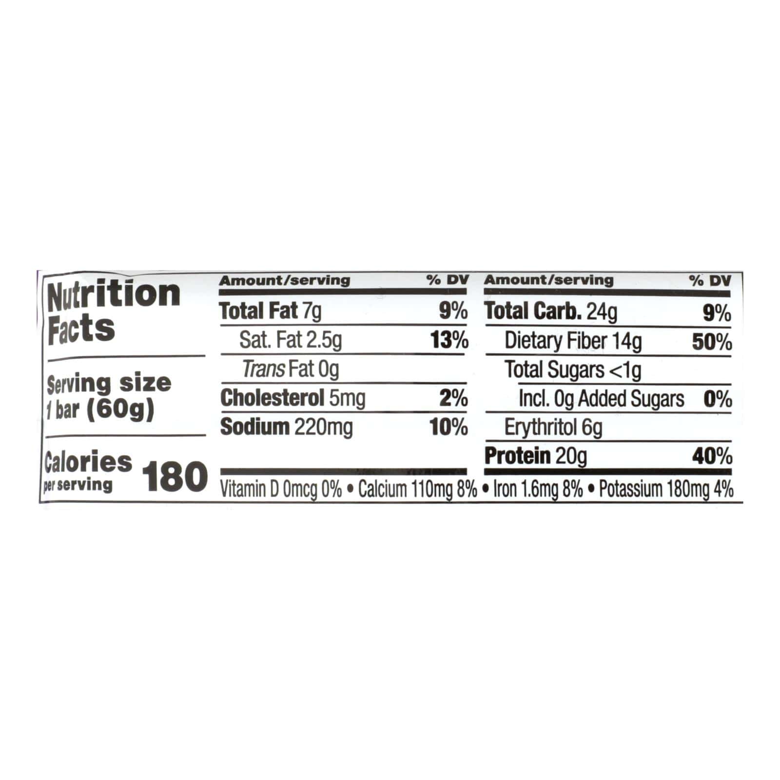 QUEST NUTRITION DOUBLE CHOCOLATE CHUNK PROTEIN BAR IS A DECADENT, GLUTEN-FREE SNACK THAT IS LOADED WITH 20 G. OF PROTEIN AND 12 G. OF FIBER. FUEL UP ON THIS 2.12 OZ. ENERGY BAR BEFORE A BIG WORKOUT; IT CONTAINS ONLY 1 G. OF SUGAR AND 180 CALORIES. THIS ENERGY BAR IS MADE WITH UNSWEETENED CHOCOLATE AND COCOA.