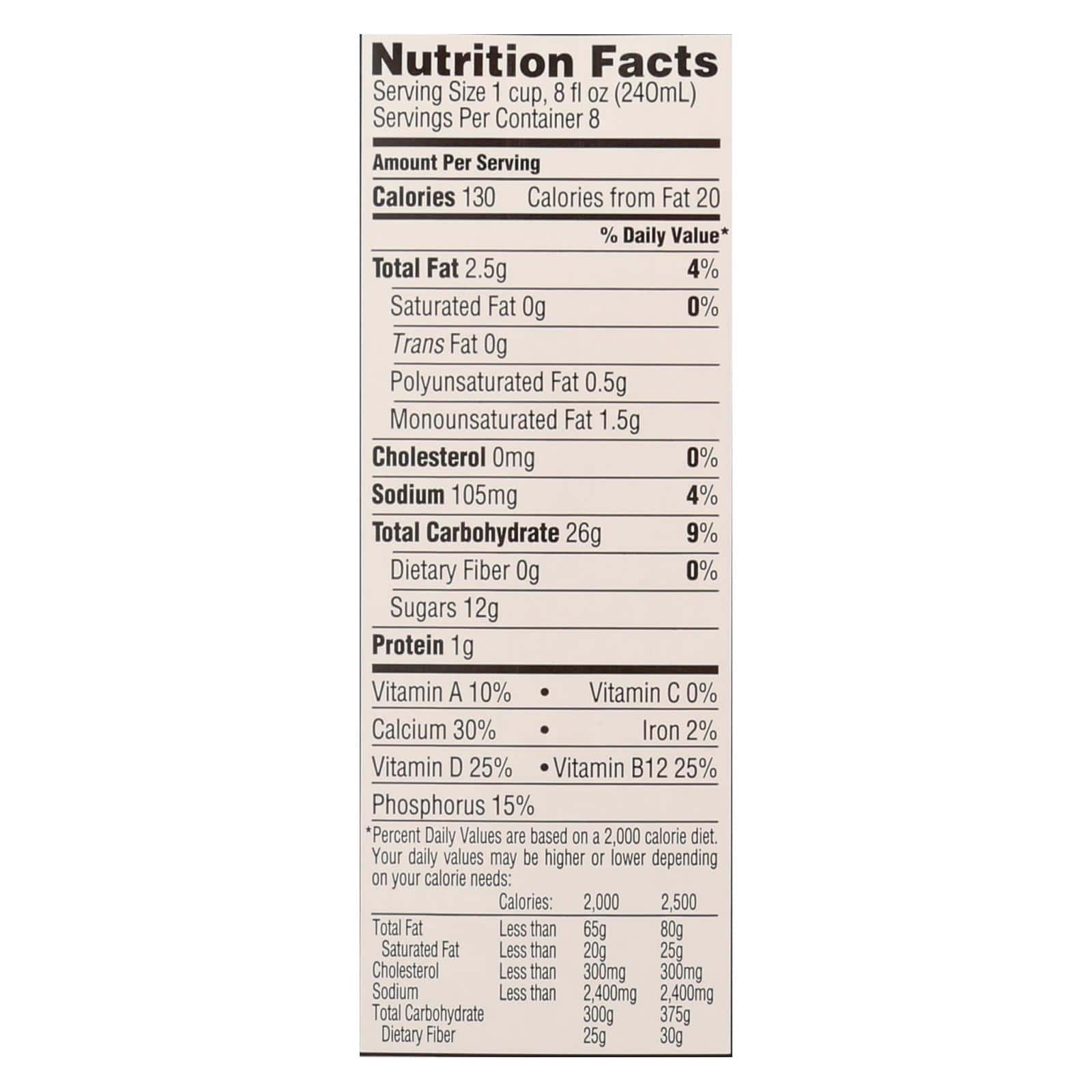 DREAM BRANDS ENRICHED VANILLA BEVERAGE IS NON-GMO, CERTIFIED ORGANIC, VEGAN AND GLUTEN-FREE. EVERY HALF GALLON OF OUR ENRICHED VANILLA BEVERAGE?CONTAINS NO SATURATED OR TRANS FATS AND NO CHOLESTEROL AND IS AN EXCELLENT SOURCE OF CALCIUM, VITAMIN B12 AND VITAMIN D. EACH 1 C. SERVING DELIVERS 130 LOWFAT, LACTOSE-FREE, NUTRIENT ENRICHED CALORIES. SEE NUTRITION FACTS PANEL FOR ALLERGENS AND WARNINGS.