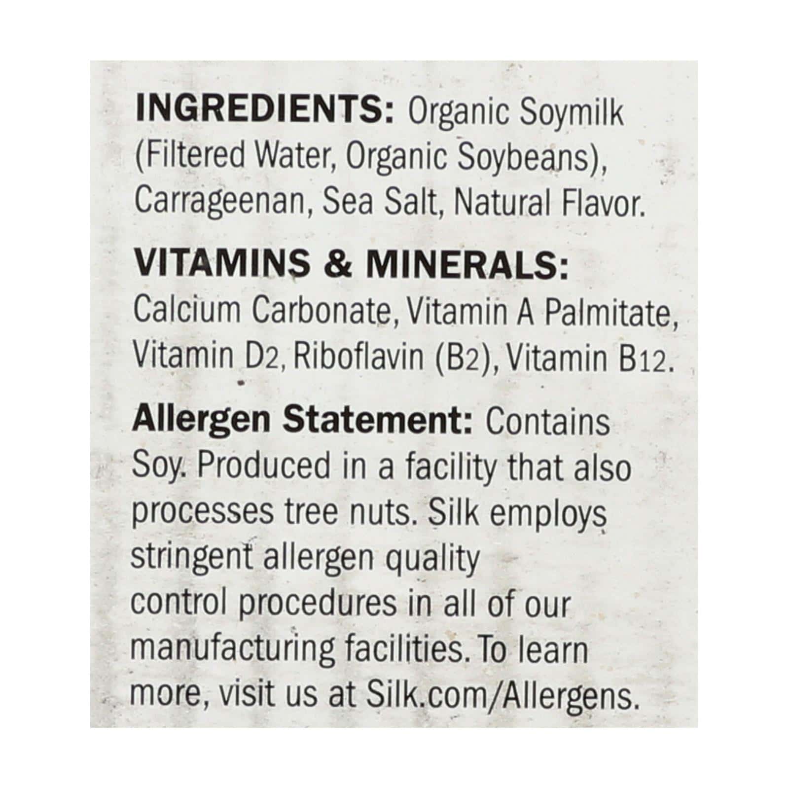 SILK UNSWEETENED SOYMILK IS A GLUTEN-FREE FOOD PRODUCT. THIS SOYMILK COMES PACKAGED IN A 1 QT. CARTON AND DOES NOT CONTAIN CHOLESTEROL, LACTOSE, ARTIFICIAL COLORS OR FLAVORS. CERTIFIED DAIRY-KOSHER AND RESPONSIBLY PRODUCED, THIS SOYMILK CONTAINS 7 G. OF PROTEIN PER SERVING. IT IS HEART-HEALTHY AND VERIFIED NON-GMO.