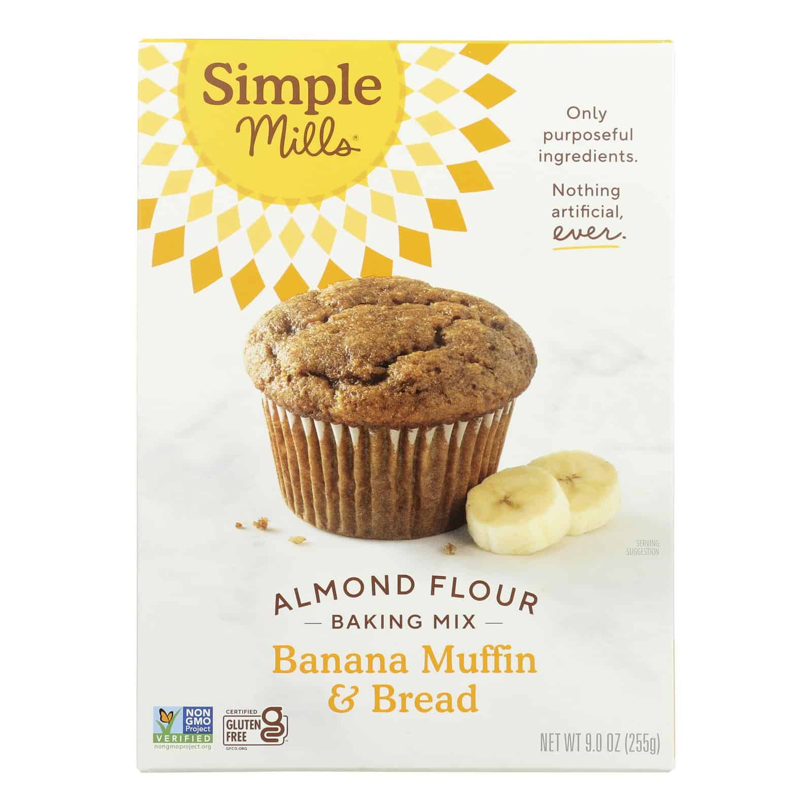 SIMPLE MILLS BANANA MUFFIN AND BREAD BAKING MIX IS MADE WITH ALMOND FLOUR, COCONUT FLOUR AND COCONUT SUGAR FOR NUTRIENT VALUE. THIS PALEO-FRIENDLY MIX CONTAINS NO GLUTEN, DAIRY OR SOY. SIMPLY COMBINE THIS BOX MIX WITH EGGS, OIL AND WATER FOR A DELICIOUS MUFFINS OR BREAD DOUGH. SEE THE NUTRITION FACTS PANEL FOR ALLERGEN INFORMATION. INCLUDES ONE 9 OZ. BOX OF SIMPLE MILLS BANANA MUFFIN AND BREAD BAKING MIX. SIMPLE MILLS ENRICHES LIVES AND BODIES THROUGH SIMPLE, DELICIOUS, REAL FOOD. WE STRIVE TO MAKE HEALTHFUL CHOICES EASY BY OFFERING FOOD THAT TASTE GREAT IN THE MOMENT AND NOURISHES YOUR BODY FOR THE LONG-TERM. WE BELIEVE IN CLEAN, NUTRITIOUS FOOD FOR A BETTER LIFE, IT’S THAT SIMPLE.
