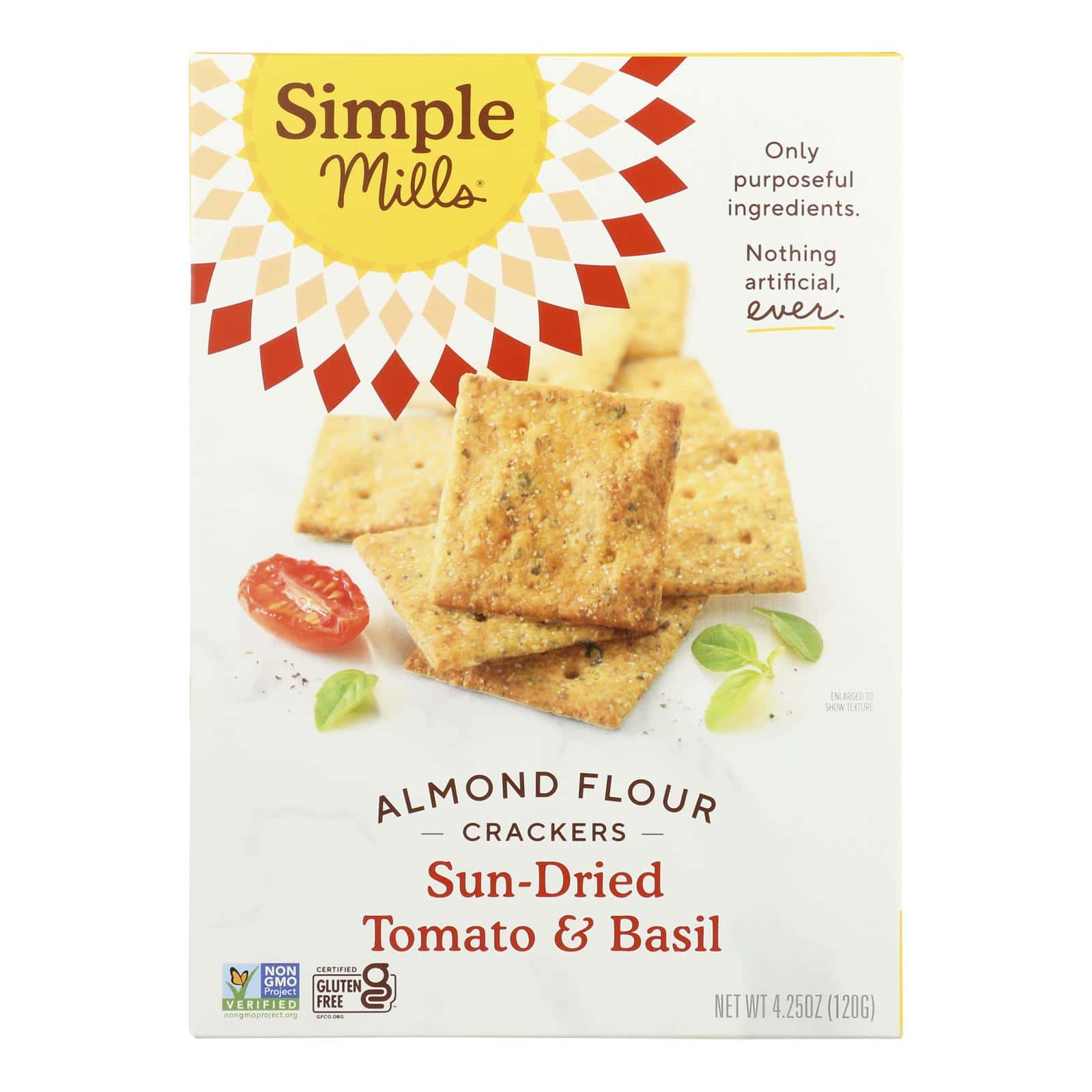 Simple Mills Sun Dried Tomato and Basil Almond Flour Crackers – Case of 6 – 4.25 oz.