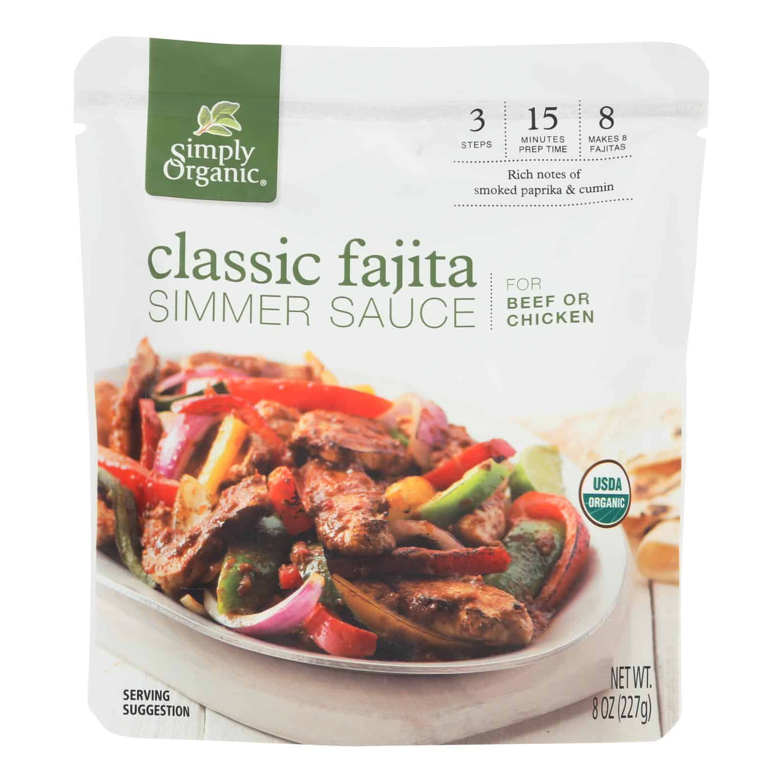 Simply Organic Simmer Sauce – Organic – Classic Fajita – Case of 6 – 8 oz