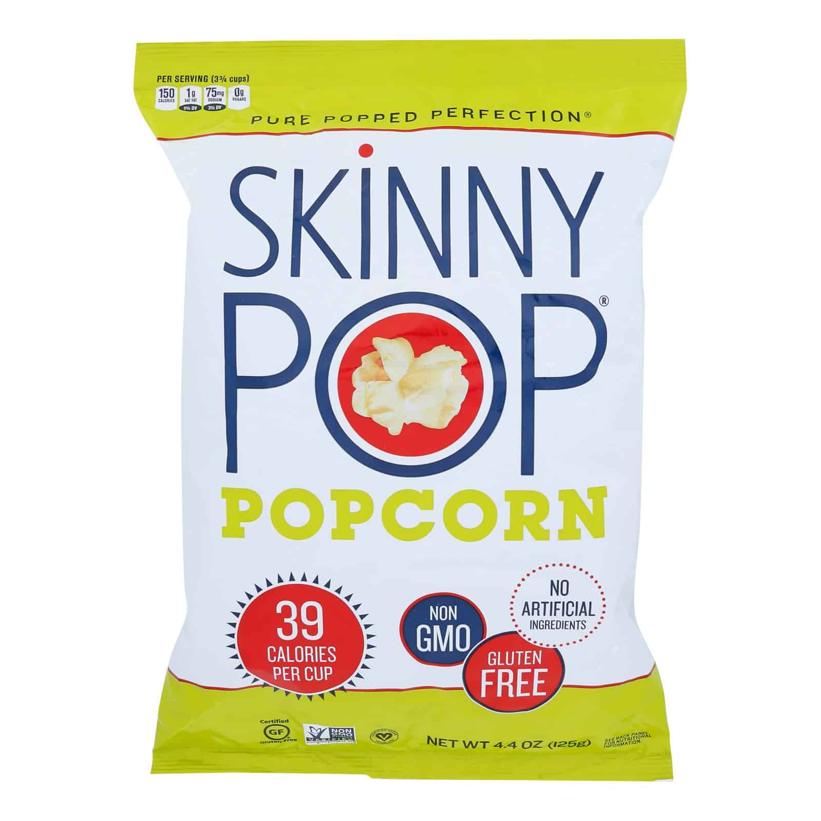 SKINNYPOP ORIGINAL POPCORN IS THE GUILT-FREE SNACK WITH A HINT OF SUNFLOWER OIL AND SALT. THIS DELICIOUS VEGAN POPCORN CONTAIN 150 CALORIES PER SERVING. WE BELIEVE IN SNACKING WITHOUT COMPROMISE. TO US, THAT MEANS USING THE CLEANEST, FEWEST AND SIMPLEST INGREDIENTS POSSIBLE TO BRING YOU THE BEST TASTING POPCORN. INCLUDES ONE 4.4 OZ. BAG OF SKINNYPOP ORIGINAL POPCORN. SKINNYPOP STARTS WITH A PREMIUM POPCORN KERNEL, SUNFLOWER OIL AND THE PERFECT AMOUNT OF SALT. FROM THERE, “PURE POPPED PERFECTION” SAYS IT ALL. OUR POPCORN HAS NO GMOS, GLUTEN OR PRESERVATIVES, MAKING SKINNYPOP A TASTY, GUILT-FREE SNACK.