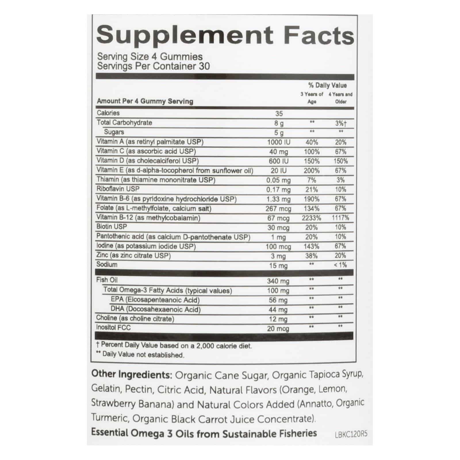 SMARTY PANTS KIDS COMPLETE STRAWBERRY, BANANA, LEMON AND ORANGE GUMMY VITAMINS ARE A DIETARY SUPPLEMENT AND COME IN A BOTTLE OF 120 SUSTAINABLE GUMMIES WITH OMEGA FATTY ACIDS. THESE GUMMIES ARE NON-GMO, GLUTEN FREE AND DO NOT CONTAIN ANY ARTIFICIAL FLAVORS OR ARTIFICIAL PRESERVATIVES. THEY ARE ALSO FREE OF SHELLFISH, EGG, FISH, MILK, PEANUTS, SOY, TREE NUTS AND WHEAT.