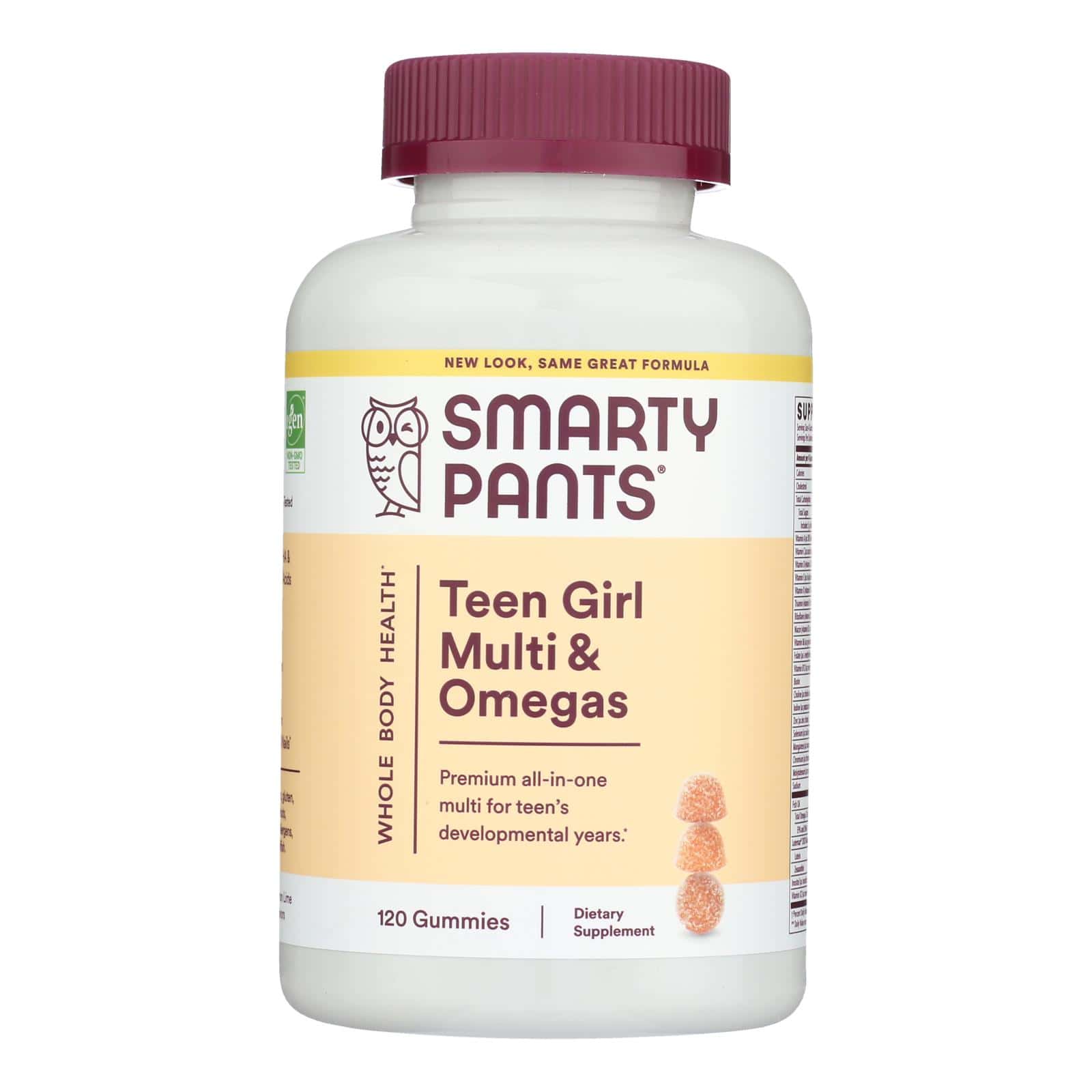 SMARTYPANTS’ TEEN GIRL COMPLETE VITAMINS GIVE A TEENAGE GIRL AN ALL-IN-ONE SOLUTION TO DAILY VITAMINS, MINERALS AND SUPPLEMENTS. OUR 120 GUMMY BOTTLE CONTAINS NUTRIENTS THAT HAVE BEEN CAREFULLY RESEARCHED AND CHOSEN. NON-GMO AND GLUTEN-FREE, OUR VITAMINS ARE LEMON LIME, MIXED BERRY AND SOUR APPLE FLAVORED AND ARE MADE WITHOUT ARTIFICIAL PRESERVATIVES AND FLAVORS. SEE NUTRITION FACTS PANEL FOR ALLERGENS.