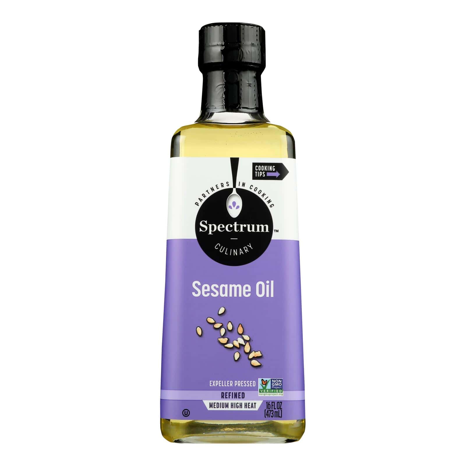 SPECTRUM NATURALS EXPELLER PRESSED SESAME OIL IS PERFECT FOR MEDIUM HEAT COOKING AS WELL AS SALAD DRESSING. THIS UNREFINED SESAME OIL HAS A RICH NUTTY FLAVOR THAT LENDS ITSELF TO SAUCES AND SALAD DRESSINGS, OR SAUTEING AT MEDIUM HEAT WHERE THE OIL’S FULL FLAVOR IS INTENDED AS AN INTEGRAL PART OF THE FINISHED DISH. A NON- HYDROGENATED FAT FOOD, OUR SESAME OIL IS CERTIFIED KOSHER AND NON-GMO. INCLUDES ONE 16 OZ. BOTTLE OF CHOLESTEROL AND TRANS-FAT FREE SPECTRUM NATURALS EXPELLER PRESSED SESAME OIL.