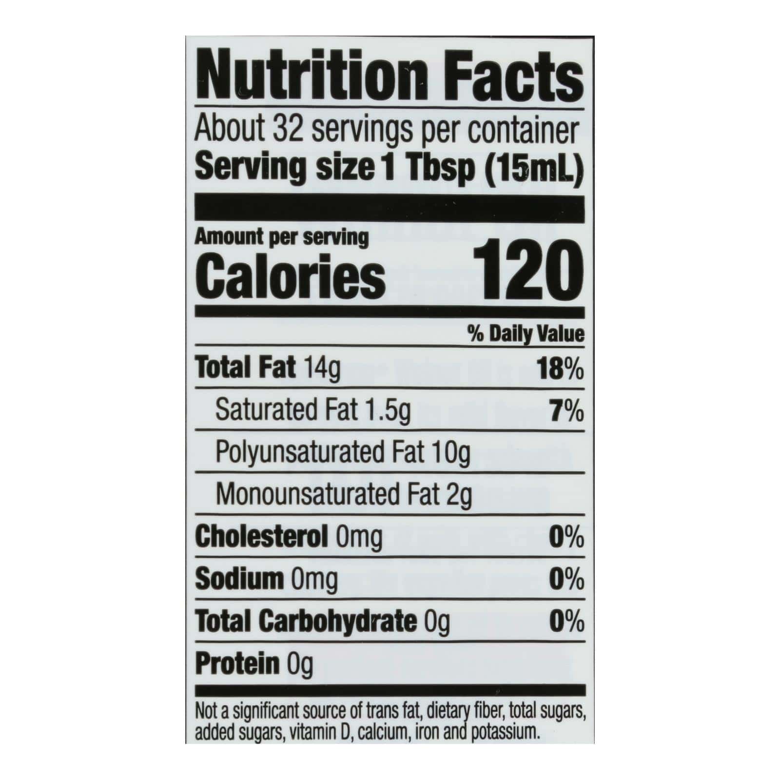 SPECTRUM NATURALS EXPELLER PRESSED WALNUT OIL IS PERFECT FOR MEDIUM HEAT COOKING AS WELL AS SALAD DRESSING. CERTIFIED KOSHER, NON-GMO, THIS WALNUT OIL IS A NON-HYDROGENATED FAT FOOD WITH A MILD, NUTTY FLAVOR THAT LENDS ITSELF TO SEAFOOD DISHES AND SALAD DRESSINGS. OUR DELICIOUS WALNUT OIL HAS 1,900 MG. OF OMEGA-3 FATTY ACIDS PER SERVING. INCLUDES ONE 16 OZ. BOTTLE OF CHOLESTEROL AND TRANS-FAT FREE SPECTRUM NATURALS EXPELLER PRESSED WALNUT OIL.