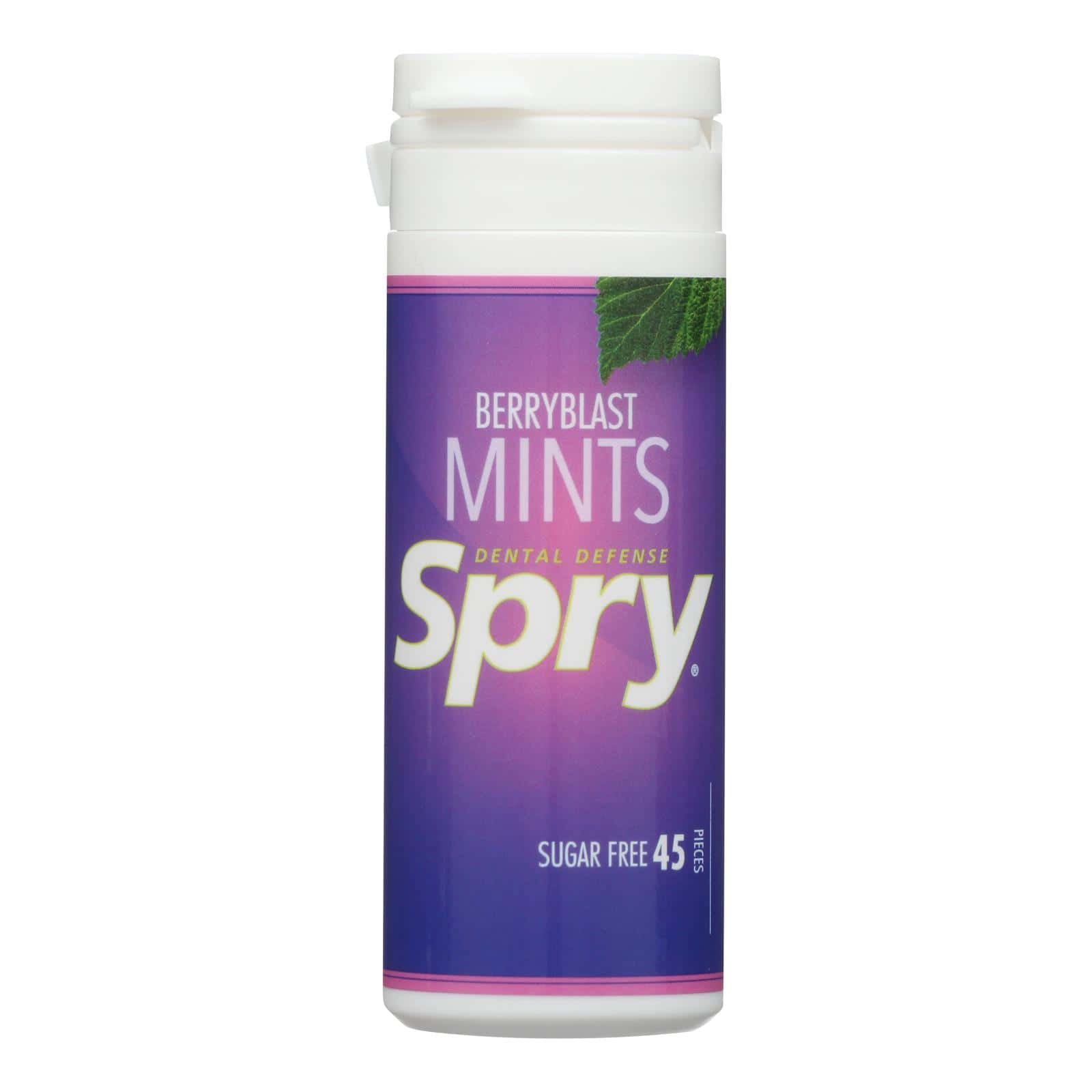 SPRY SUGARFREE BERRYBLAST MINTS ARE OUR DELICIOUS AND HEALTHY BOOSTERS TO YOUR DENTAL HEALTH. SWEETENED ONLY WITH XYLITOL, OUR PEPPERMINTS HELP REDUCE THE RISK OF TOOTH DECAY AND IMPROVE ORAL HEALTH BY REPLACING TOOTH-DECAYING SUGARS. OUR PRODUCT IS ALSO KOSHER. INCLUDED IS ONE 45 COUNT CONTAINER OF SPRY SUGARFREE BERRYBLAST MINTS.
