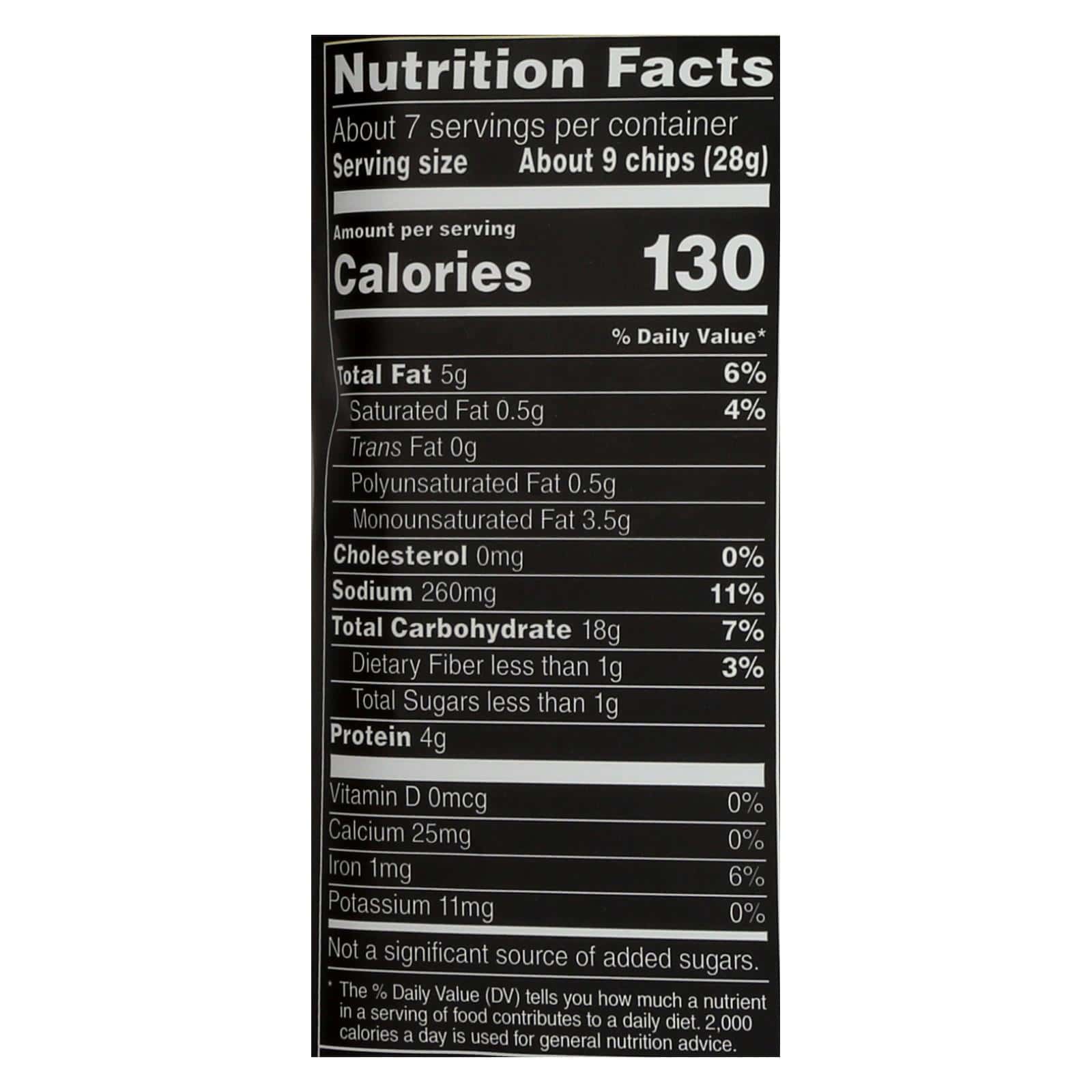 STACY’S PARMESAN GARLIC & HERB PITA CHIPS ARE LOW IN SATURATED FAT WITH ONLY 0.5 G. PER SERVING FOR A HEALTH CONSCIOUS SNACK. WE DON’T USE ANY ARTIFICIAL COLORS OR FLAVORS TO KEEP THE TASTE PURE. EACH 7.33 OZ. BAG CONTAINS 7 SERVINGS, SO YOU CAN ENJOY THEM ON SEVERAL OCCASIONS. SEE NUTRITION FACTS PANEL FOR ALLERGENS.