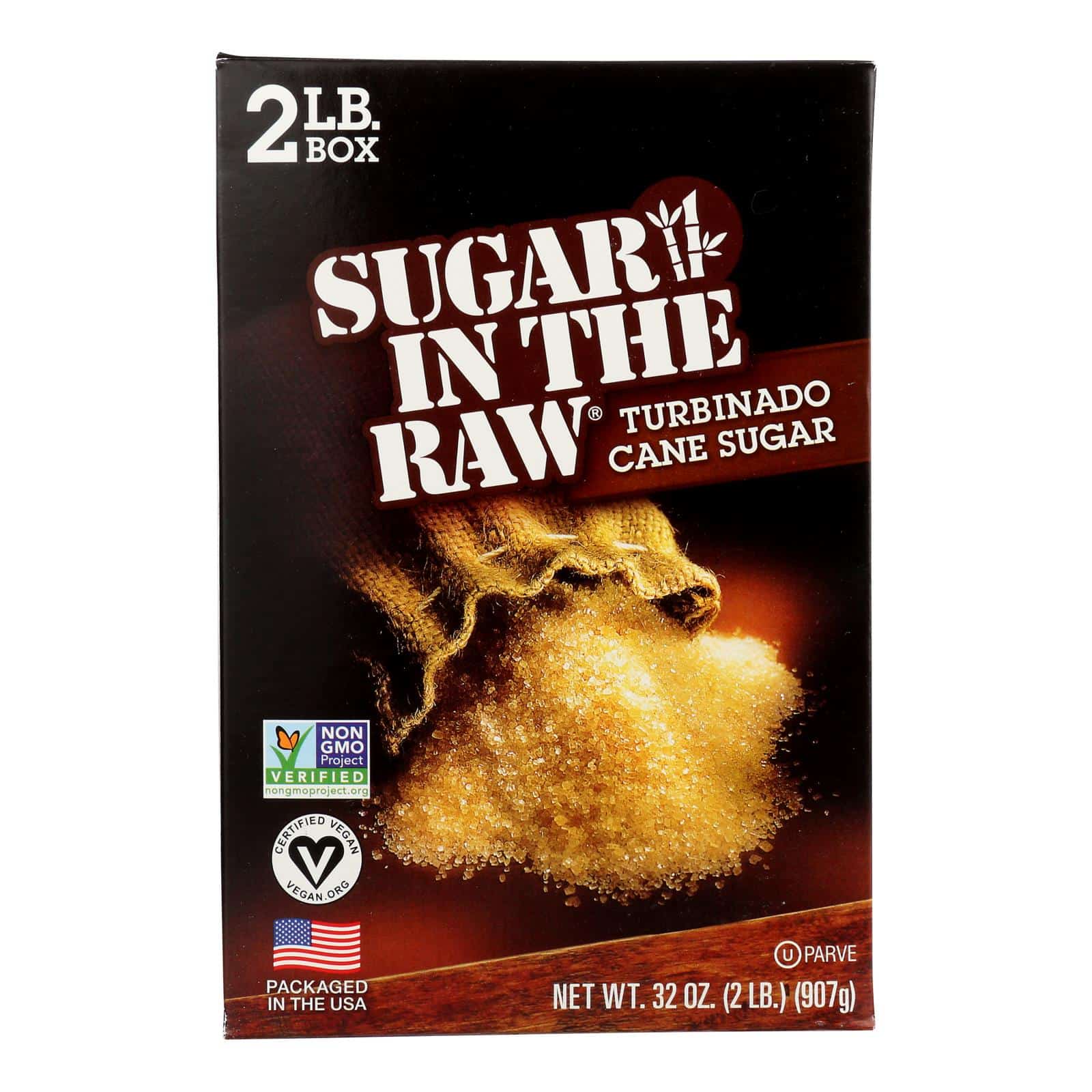 SUGAR IN THE RAW TURBINADO SUGAR IS A GREAT ALL-PURPOSE SWEETENER MADE FROM 100% NATURAL, NON-GMO SUGAR CANE. THE NATURAL MOLASSES IN THE CRYSTALS PRODUCES A DISTINCTIVE TASTE, HEARTY TEXTURES AND NATURAL GOLDEN COLOR. OUR SUGAR IS SOURCED WHERE THE TROPICAL SUN MEETS RICH, FERTILE SOIL AND COOL MOUNTAIN WATERS. USE OUR SUGAR IN THE RAW IN PLACE OF ORDINARY REFINED SUGAR, AND SAVOR THE DELICIOUS OLD-FASHIONED TASTE! THIS 32 OZ. BOX IS GREAT FOR SWEETENING YOUR TEA, SPRINKLING ON YOUR CEREAL OR ADDING SOME SPARKLE TO YOUR MUFFINS. YOU CAN COOK AND BAKE WITH IT, TOO.