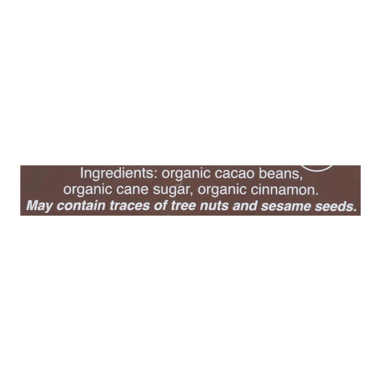 TAZA CHOCOLATE CINNAMON DARK CHOCOLATE MEXICANO IS USDA-CERTIFIED ORGANIC, KOSHER, NON-GMO PROJECT VERIFIED, VEGAN AND GLUTEN-FREE. EACH 2.7 OZ. BAR IS MADE WITH DIRECT TRADE STONE GROUND CHOCOLATE AND ORGANIC CANE SUGAR IN A FACTORY IN SOMERVILLE, MASSACHUSETTS. SEE NUTRITION FACTS PANEL FOR ALLERGENS.